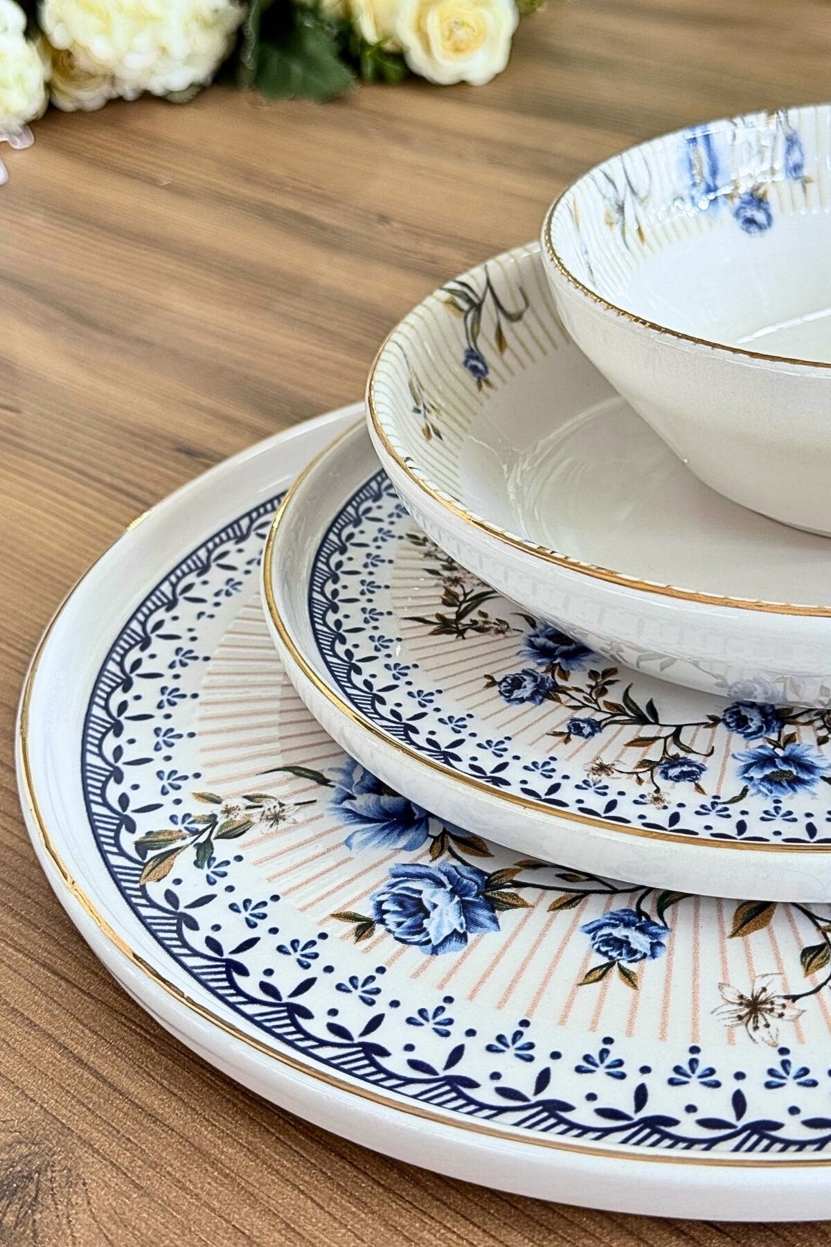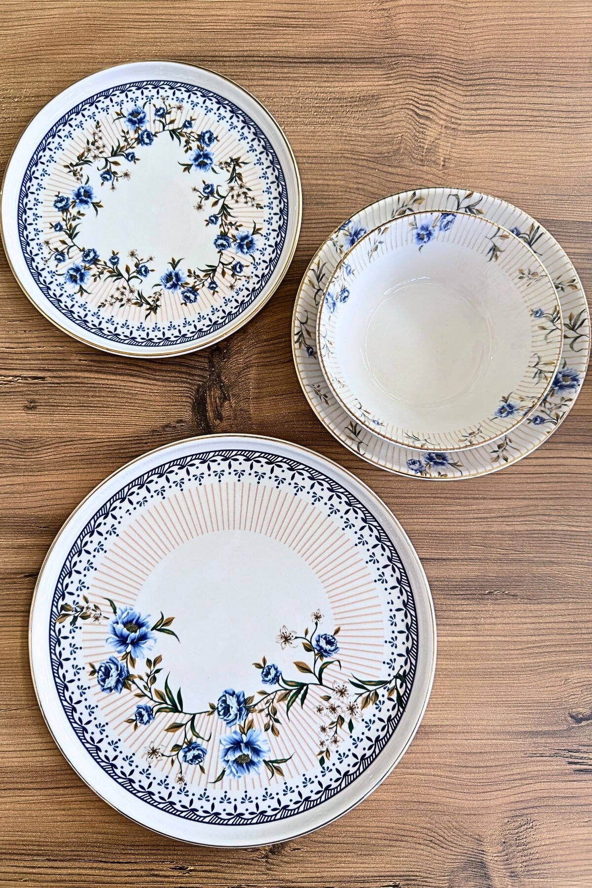 Blue Garden 27 Parça 6 Kişilik Porselen Yemek Takımı