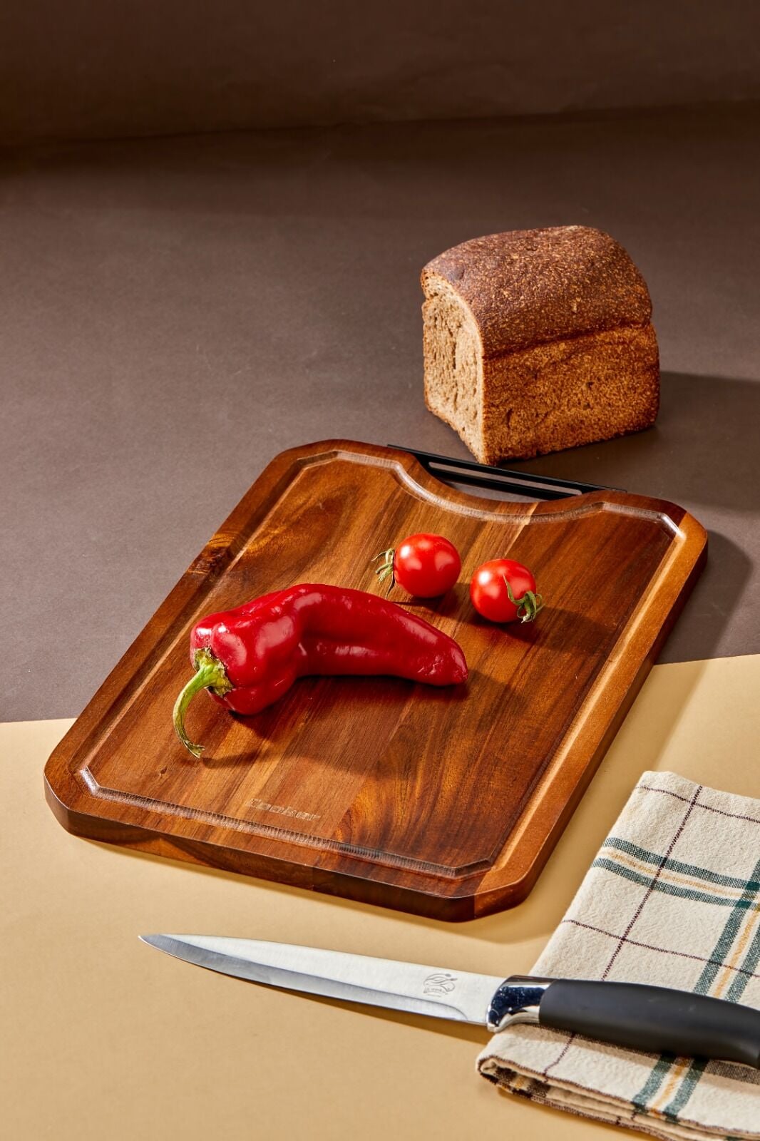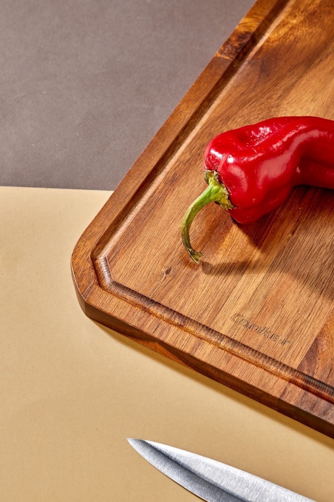 لوح تقطيع أكاسيا كوكر ، بملمسه الطبيعي والمتين، يُضفي لمسة جمالية على المطبخ. تصميمه العملي يُضفي لمسةً عمليةً أثناء التحضير ومظهرًا جماليًا.