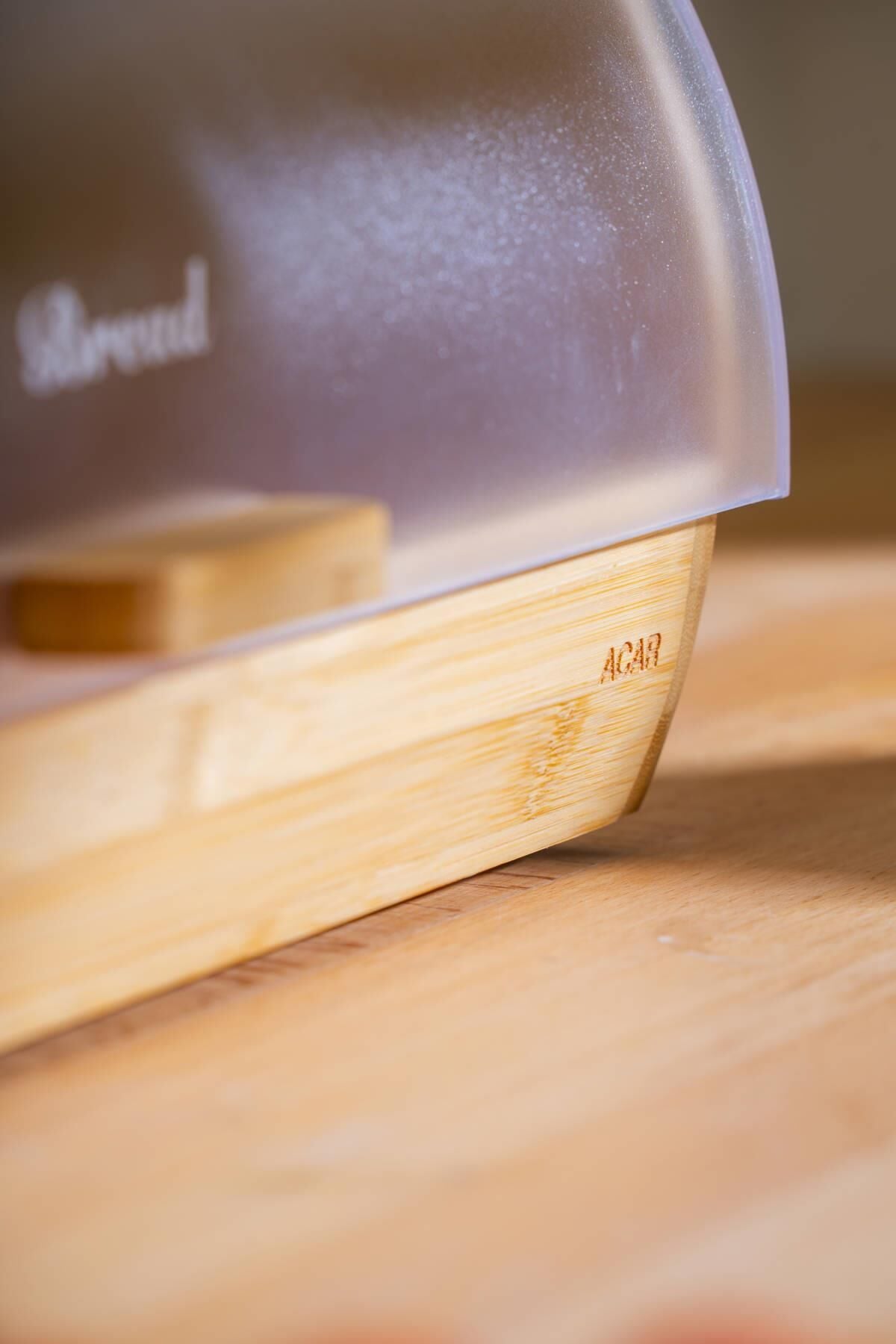 صندوق تخزين الخبز سيريوس المصنوع من الخيزران - 39 سم، يُضفي لمسة عصرية على مطبخك بفضل هيكله المصنوع من الخيزران الطبيعي وغطائه الشفاف المنزلق. مساحته الداخلية الرحبة تحافظ على خبزك طازجًا، بينما يُضفي تصميمه الجميل لمسةً أنيقةً على منضدتك.