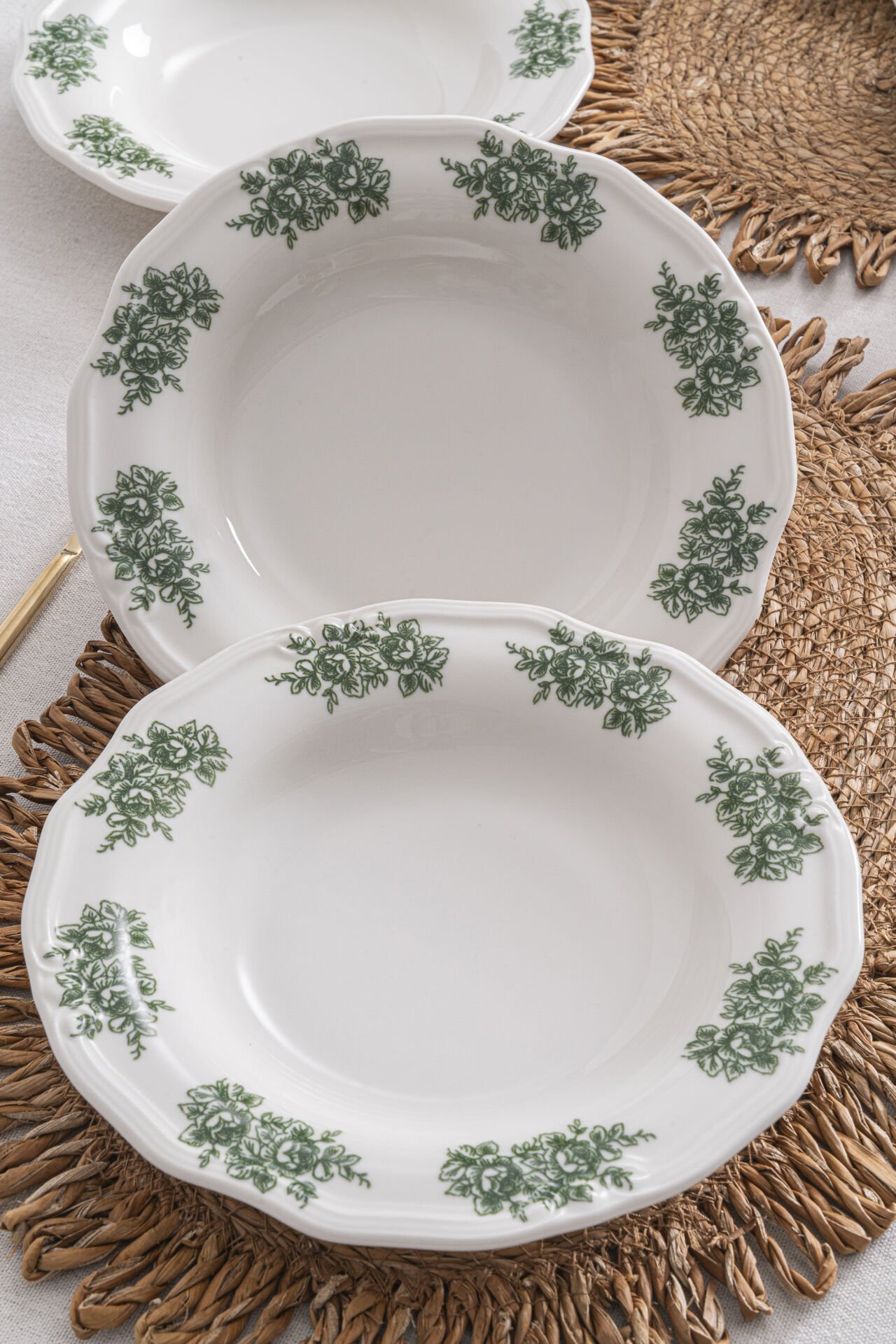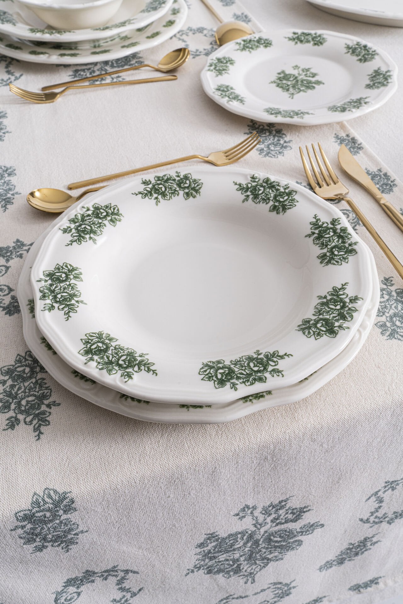 تتجلى أناقة اللون الأخضر الخالدة في مجموعة Vintage Flowers Green . ابتكروا جوًا متناغمًا وموحدًا بتنسيق أطباق التقديم ، وأطباق الكيك ، وأوعية الحساء من نفس المجموعة مع منسوجات متناسقة مثل مفارش المائدة ومفارش الطاولات .