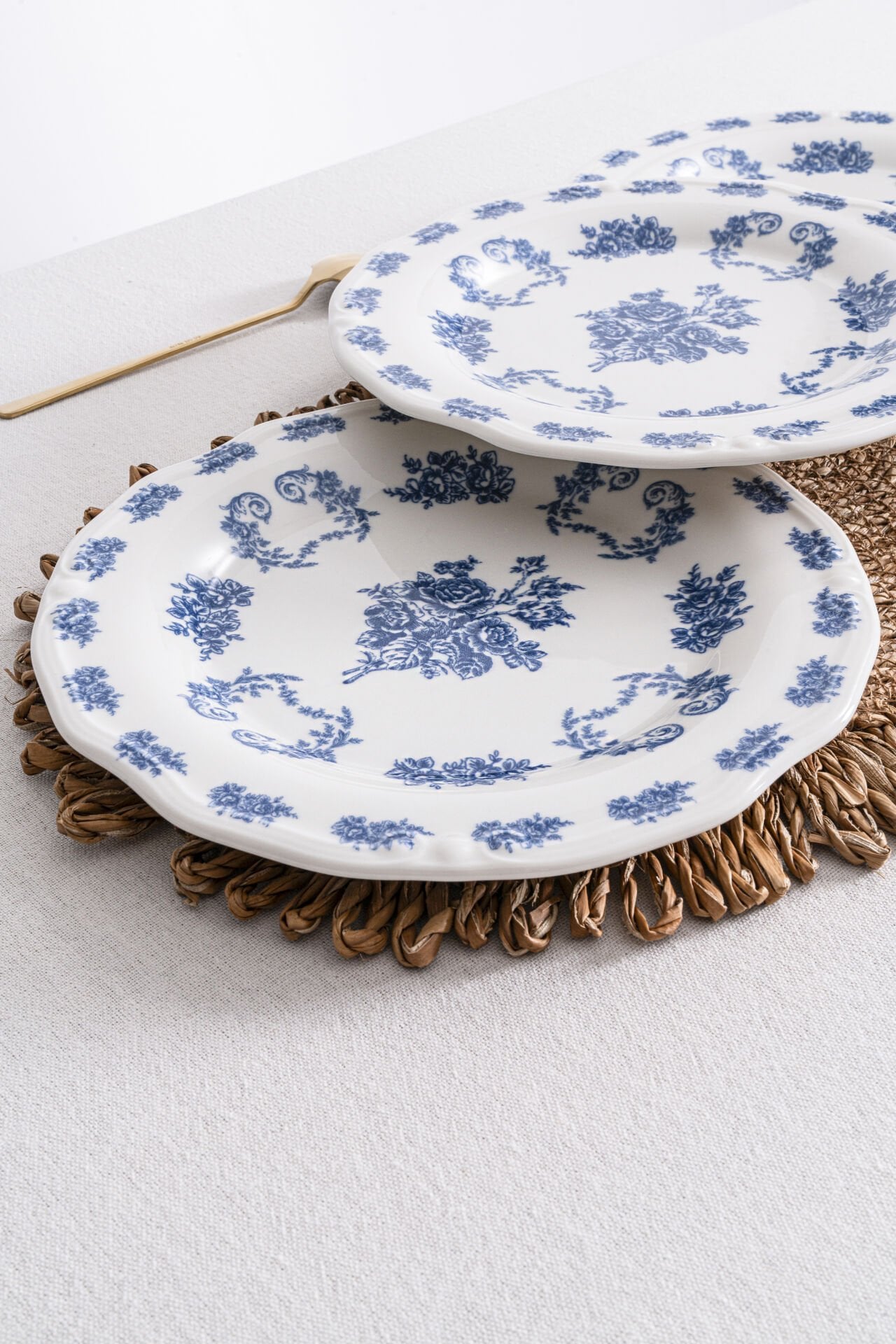 طقم أطباق تقديم بورسلين "فينتدج فلاورز بلو" (25 سم)، 6 قطع، يجمع بين الأناقة الكلاسيكية والخطوط العصرية. مزين بتفاصيل أنيقة من زخارف نباتية زرقاء داكنة، يضفي هذا التصميم المميز لمسةً من الحنين والجمال على طاولاتك.