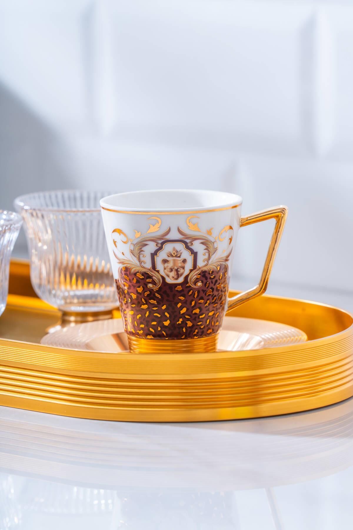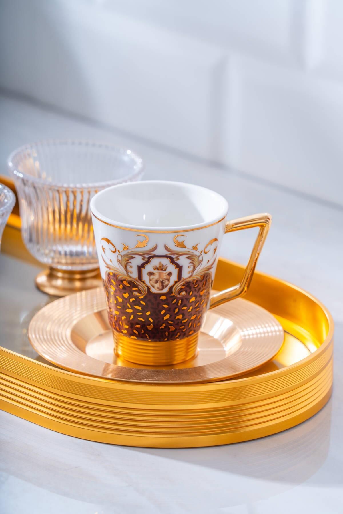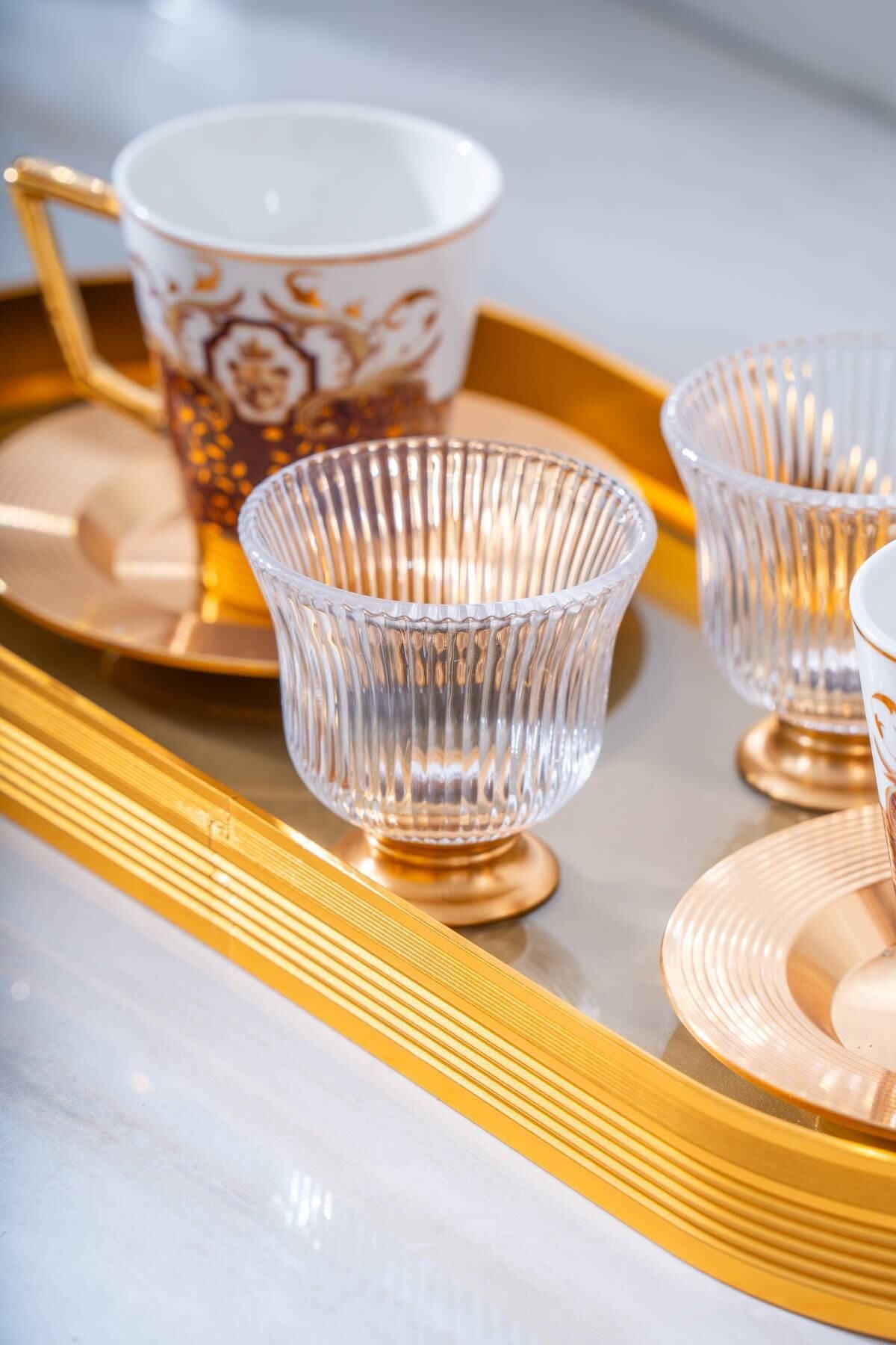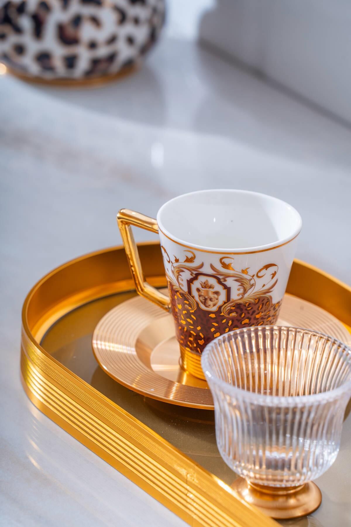 طقم فناجين قهوة برونتو ، بزخارفه الأنيقة وصينيته الزجاجية المزينة بتفاصيل ذهبية، يُحوّل متعة قهوتك إلى تجربة فاخرة. يمزج تصميمه الأنيق بين الأسلوب الكلاسيكي والعصري، ليخلق أجواءً راقية مع كل رشفة. تُضفي أكواب البورسلين المصنوعة بدقة وصينيته الزجاجية الأنيقة لمسةً من الأناقة على ضيافة ضيوفك.