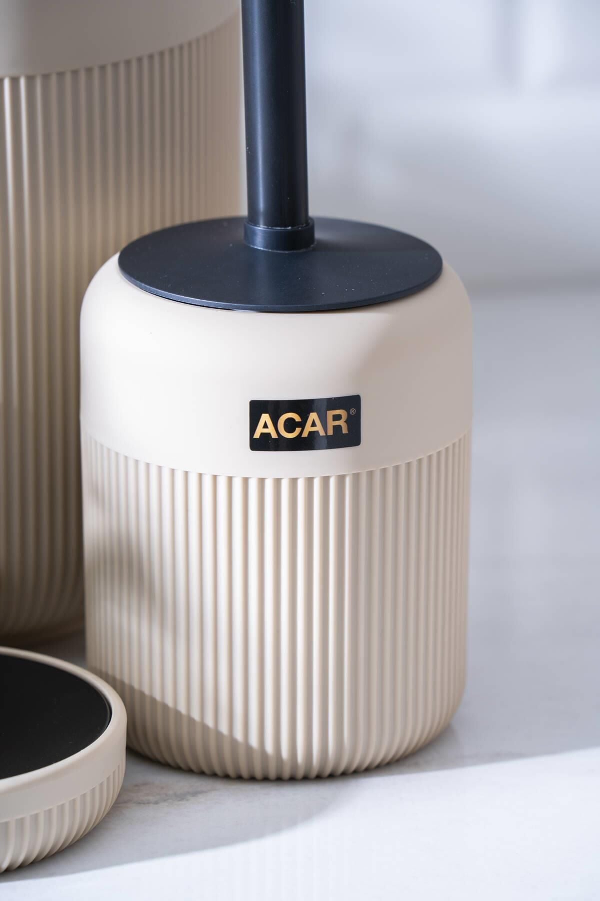 - محتويات المنتج: موزع صابون سائل (13.5 × 8.5 سم)، حامل فرشاة أسنان (10.5 × 7 سم)، موزع صابون صلب (11 × 11 سم)، فرشاة مرحاض (40 × 10 سم)، سلة مهملات (20.5 × 19 سم)
