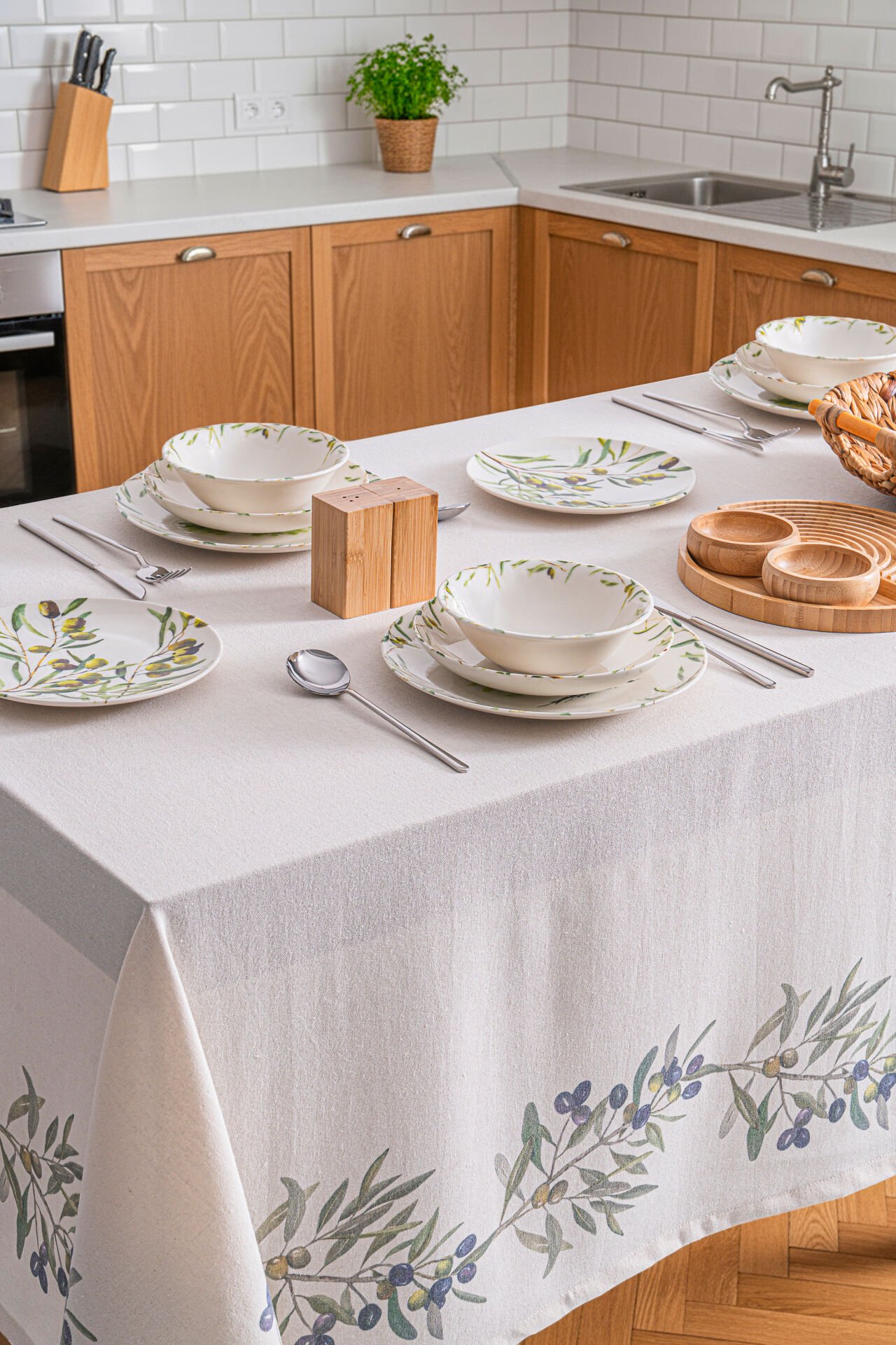 أضف لمسةً من أجواء البحر الأبيض المتوسط الطبيعية بتنسيقه مع مفرش طاولة من الكتان بلون الزيتون من نفس السلسلة. يُضفي أجواءً متناغمةً مثاليةً عند تنسيقه مع إكسسوارات زجاجية بألوان طبيعية وتفاصيل من الخيزران.
