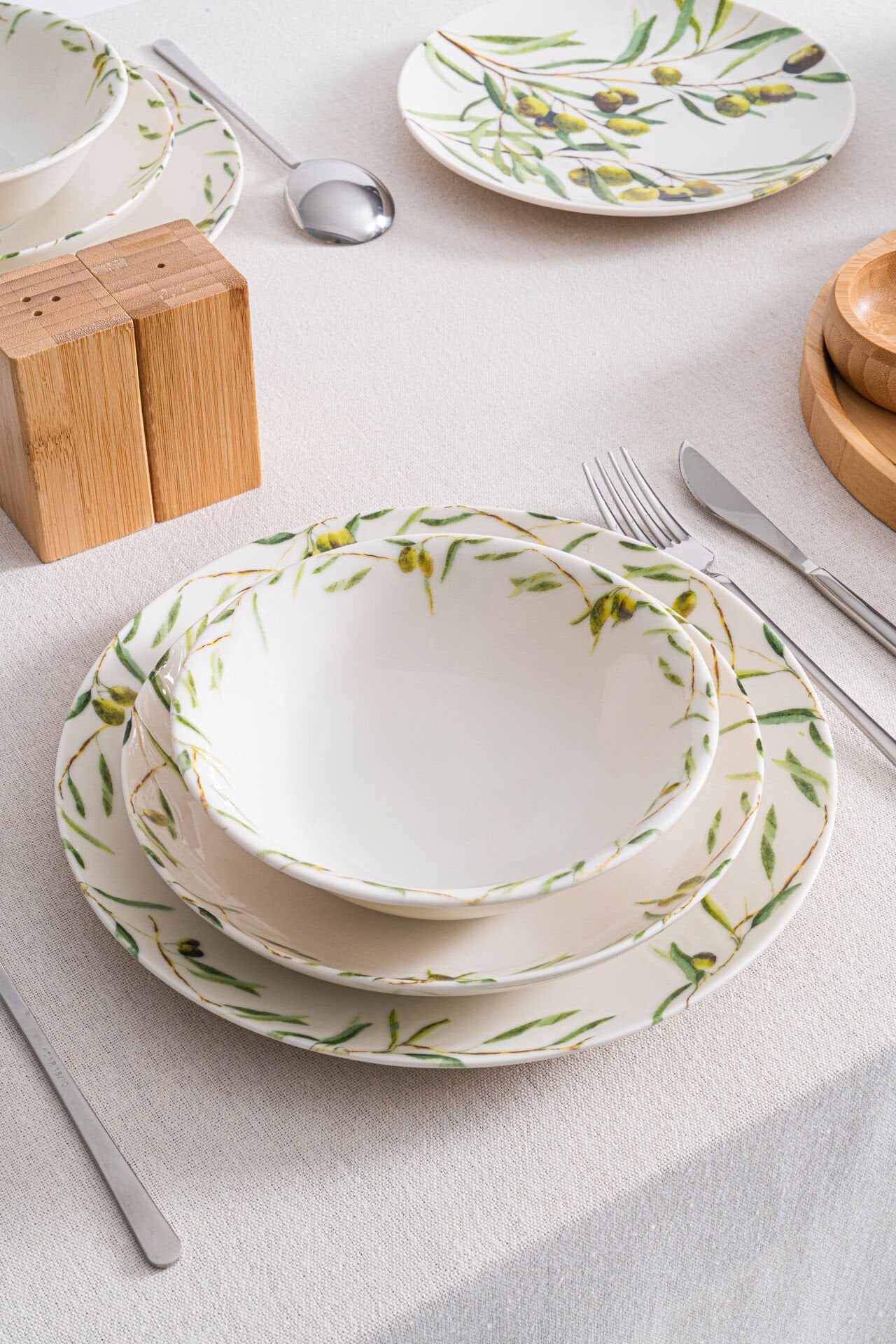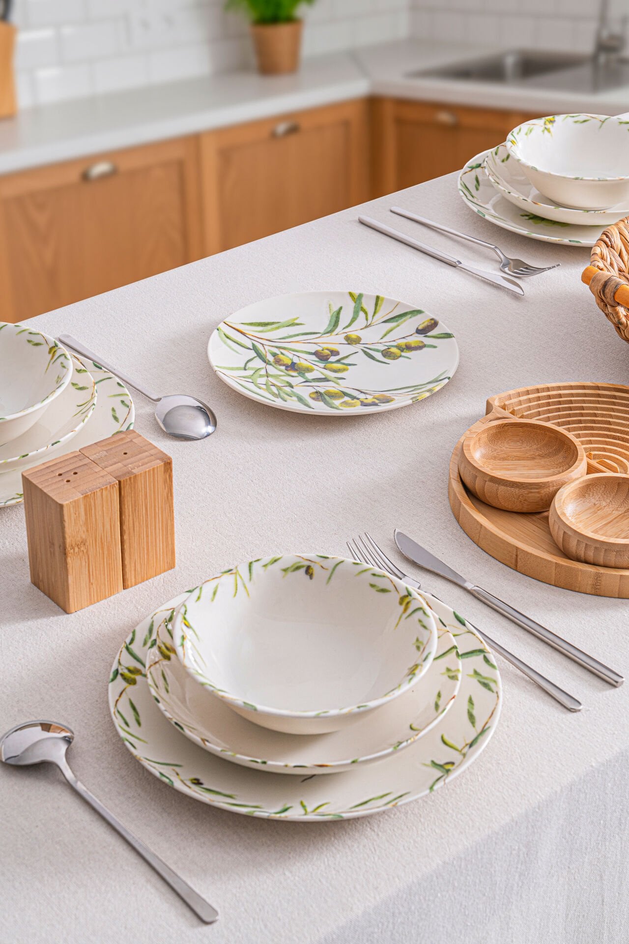 تُضفي مجموعة أدوات المائدة Olive على موائدك وفرة شجرة الزيتون وهدوء البحر الأبيض المتوسط، وهي خيار خالد لأولئك الذين يحبون الطبيعة والأناقة.