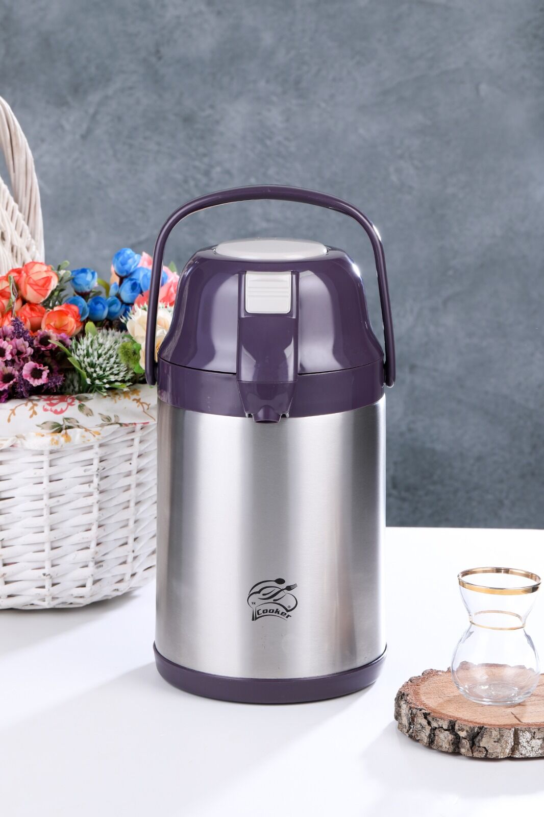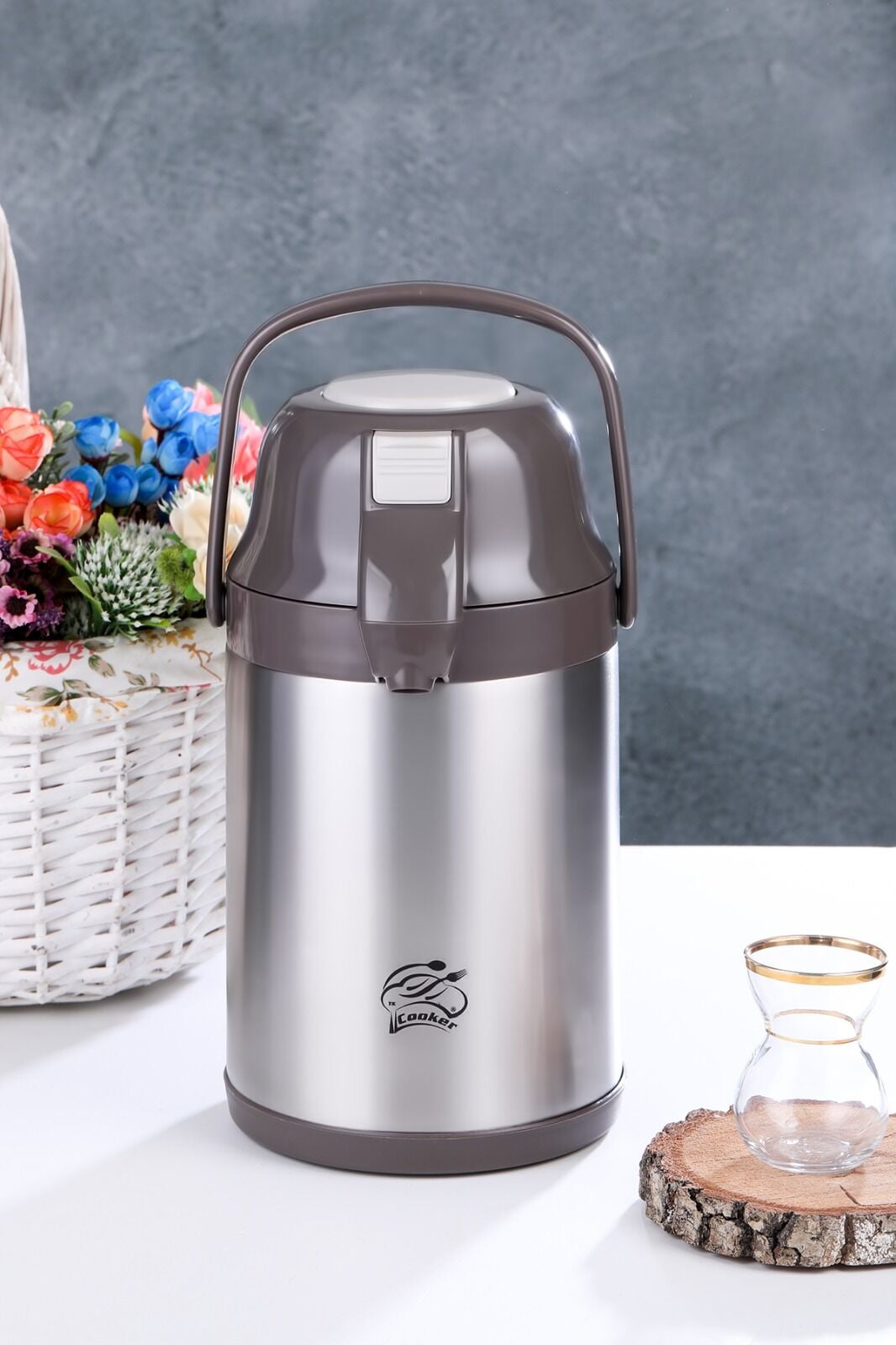 ترمس ستانلس ستيل سعة 2.5 لتر يحافظ على مشروباتك طازجة طوال اليوم بفضل عزله الحراري الفائق وبنيته المتينة. تصميمه العصري، ونظام غطائه المحكم، وعزله عالي الأداء، يجعله عمليًا وموثوقًا للاستخدام في أي بيئة.