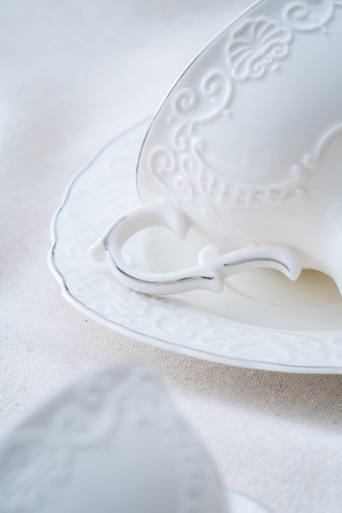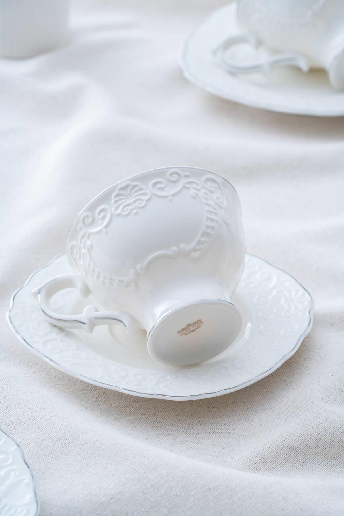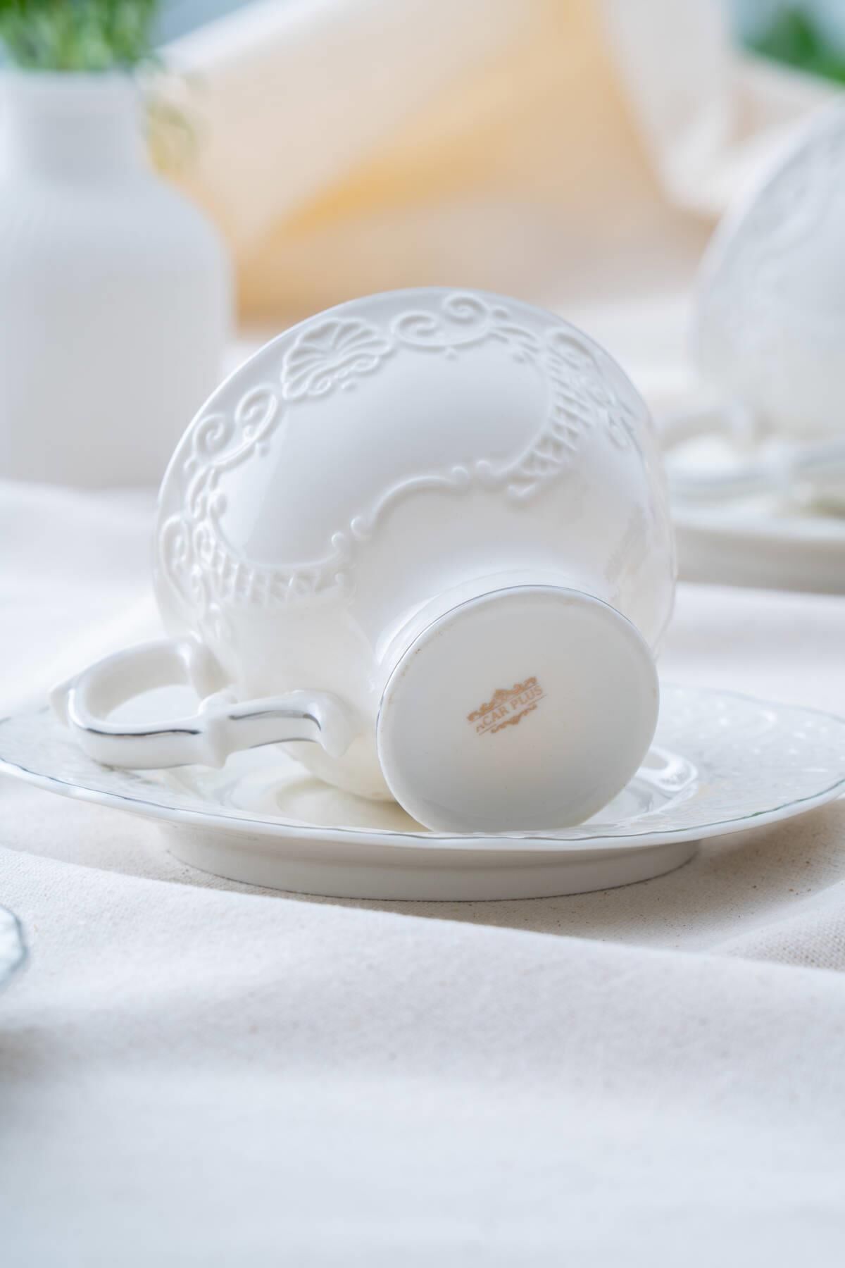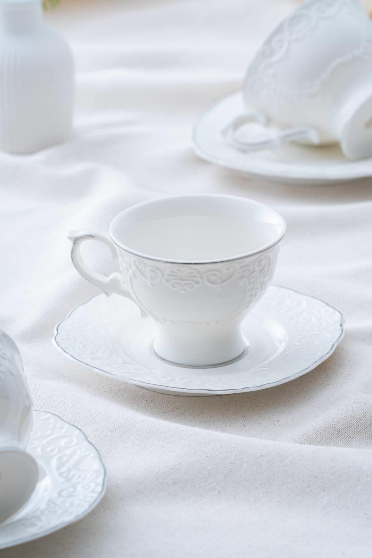 The 220 ml Angela Silver Teacup Set , suitable for both classic and modern tea services, is designed to add an elegant sparkle to your table. The elegant appearance of porcelain combined with the sparkling silver details creates a delightful aesthetic and refinement with every sip.