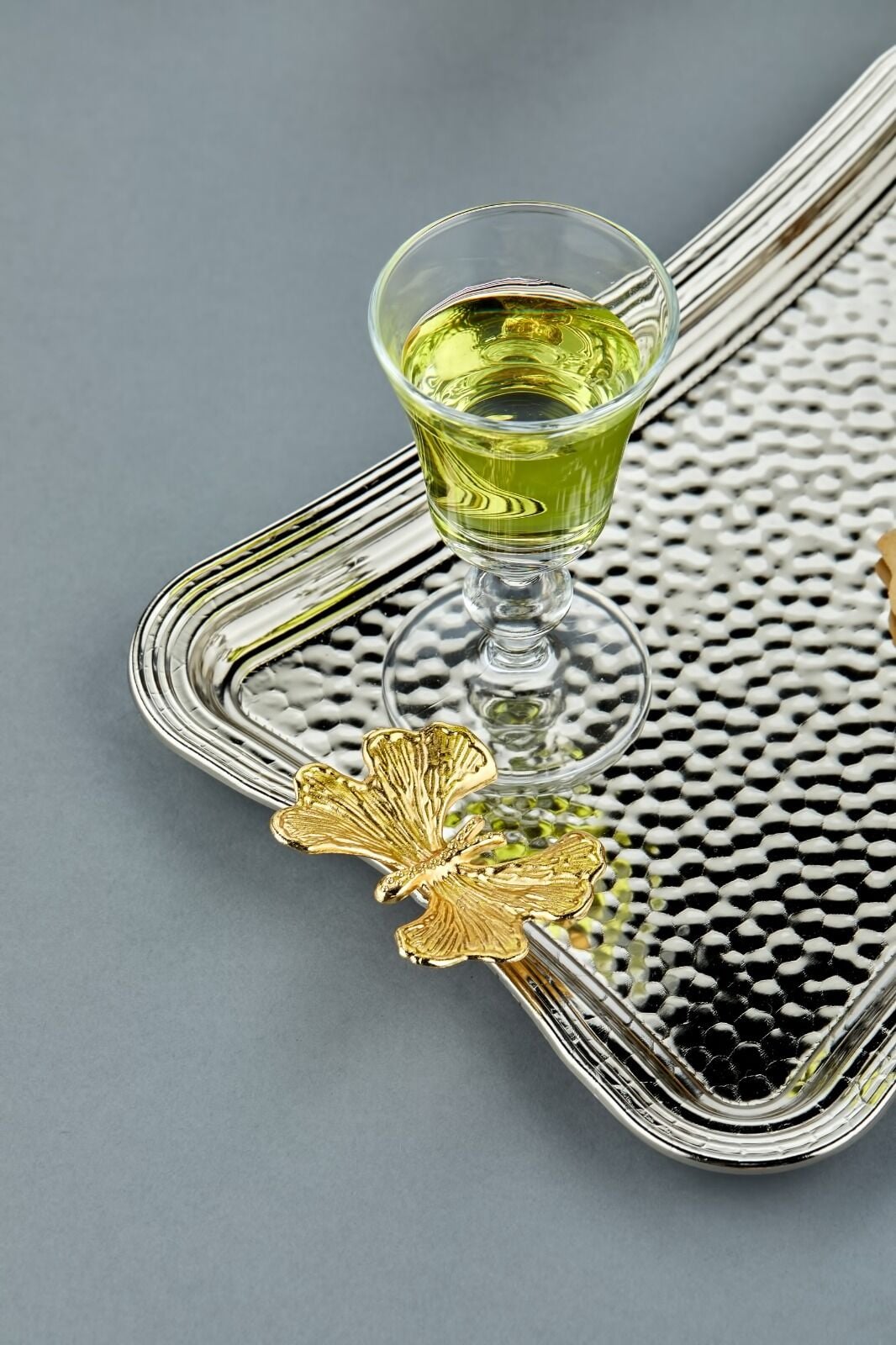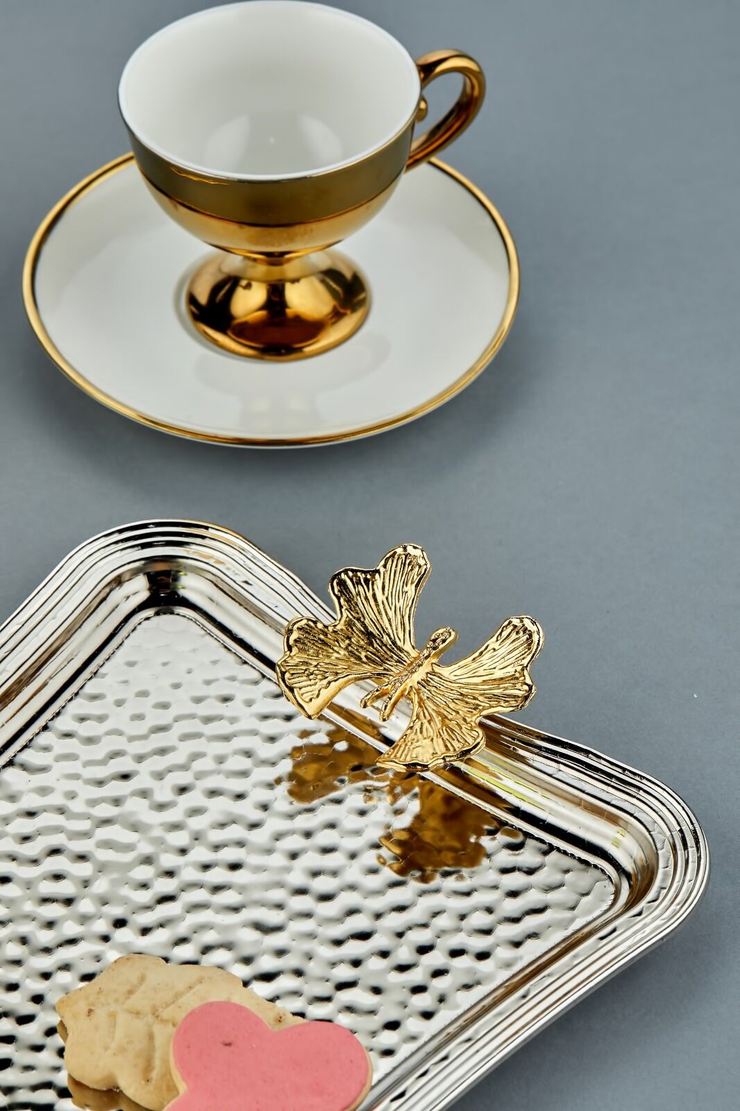 The silver butterfly-patterned serving tray captures attention with its simple sparkle in every presentation. Even when used individually, it adds an elegant and contemporary look to any table.