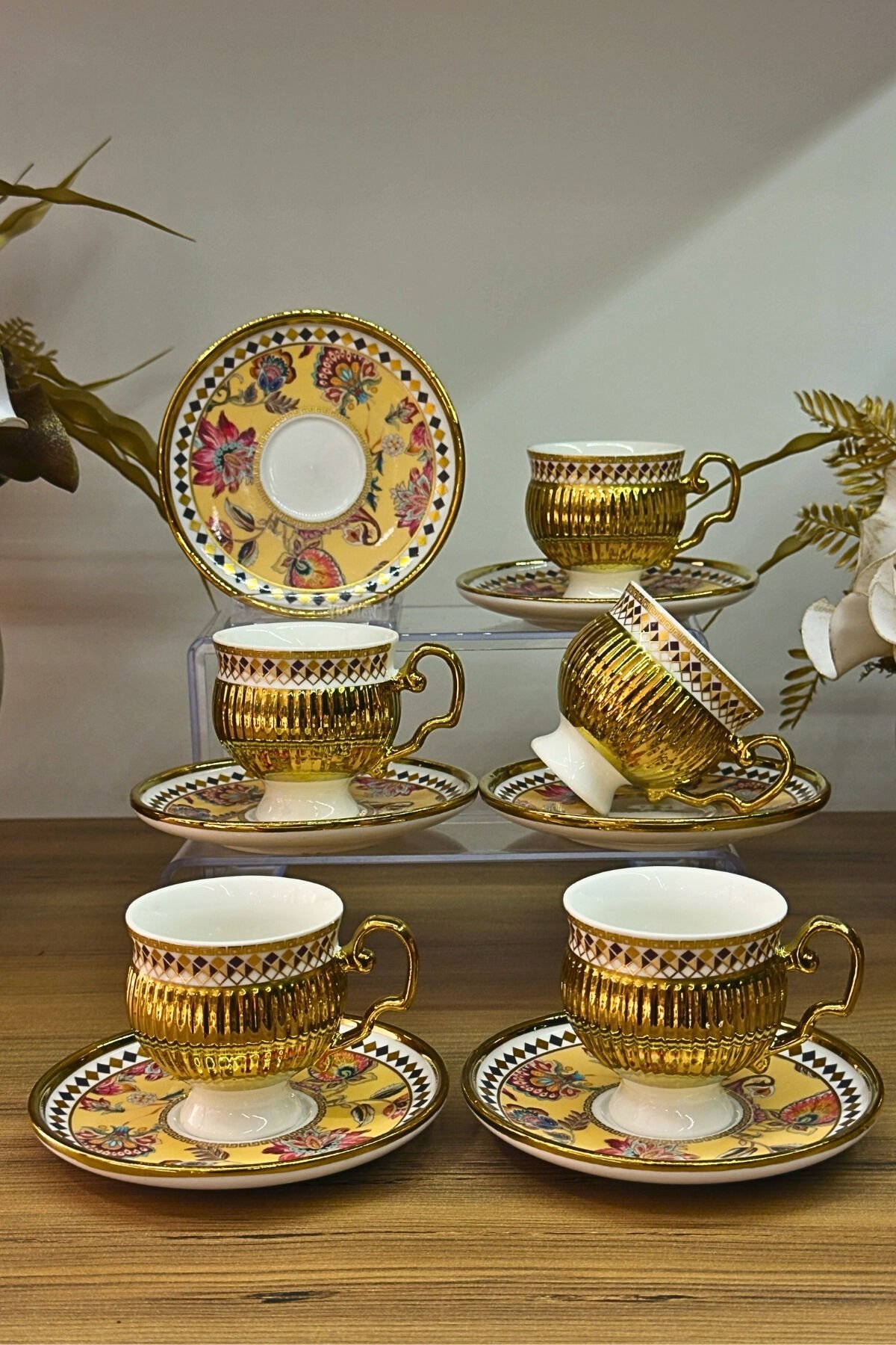 Standing out with its both traditional and contemporary lines , the Ethnic Gold Detailed Footed Coffee Cup Set for 6 adds a touch of luxury to your coffee presentations. It combines aesthetics and functionality for those looking to make a difference in their home decor.