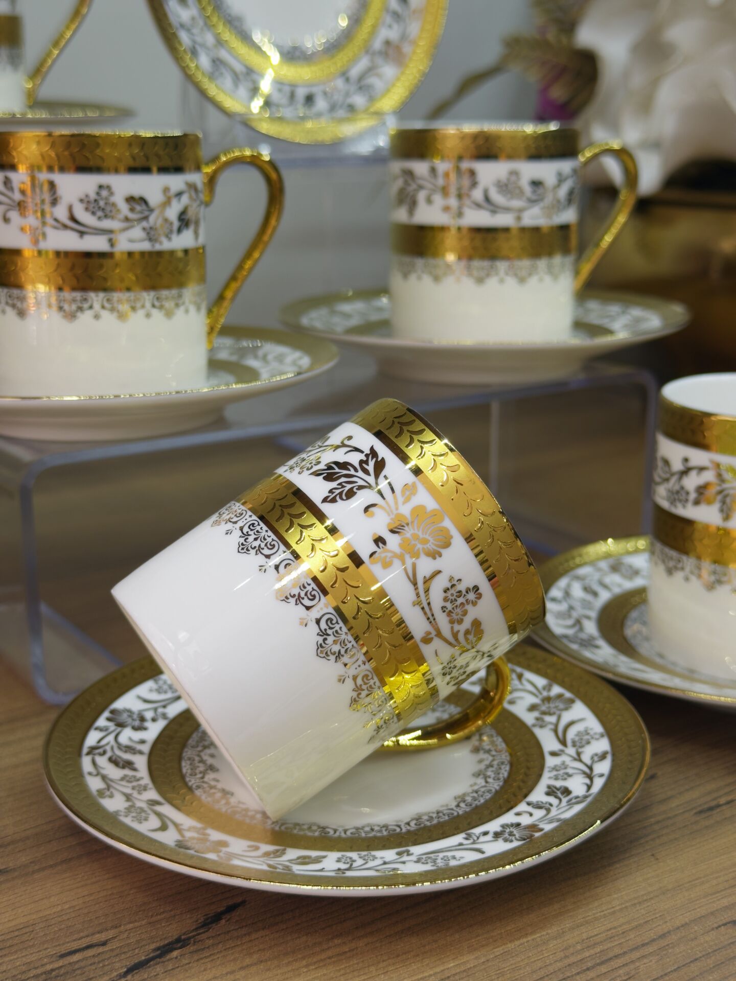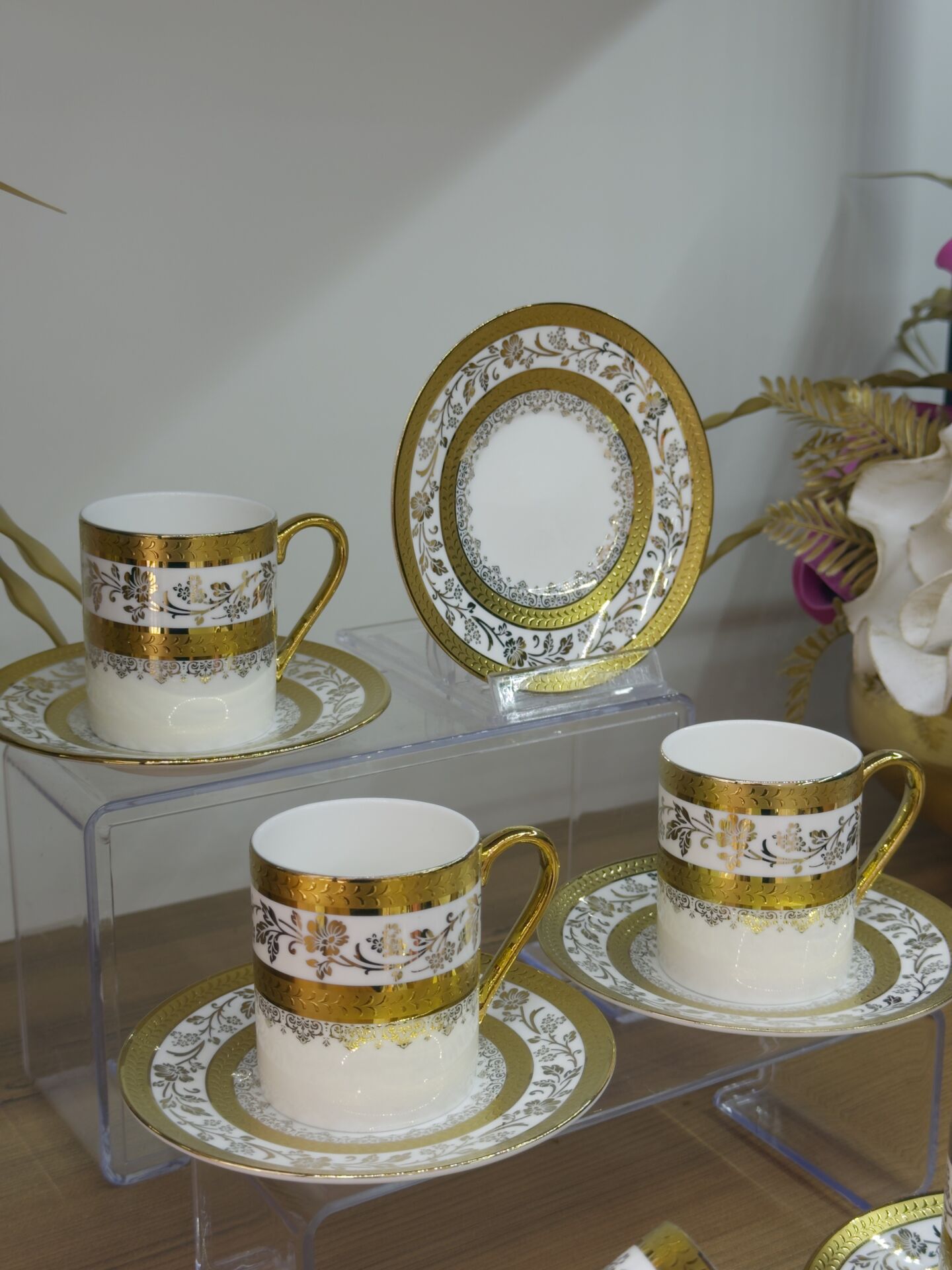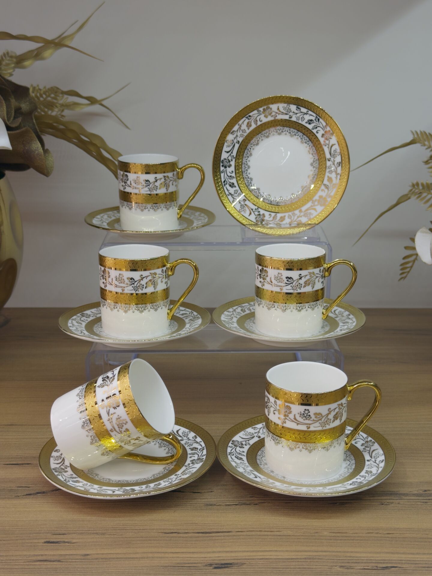 The Olivette White Gold Coffee Cup Set combines simple elegance with classic coffee enjoyment. Its eye-catching design makes it a great gift or a sophisticated addition to your own collection.
