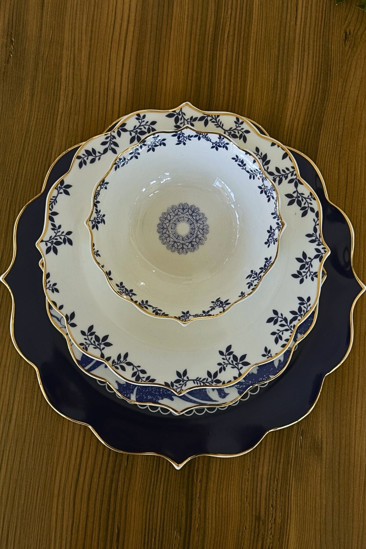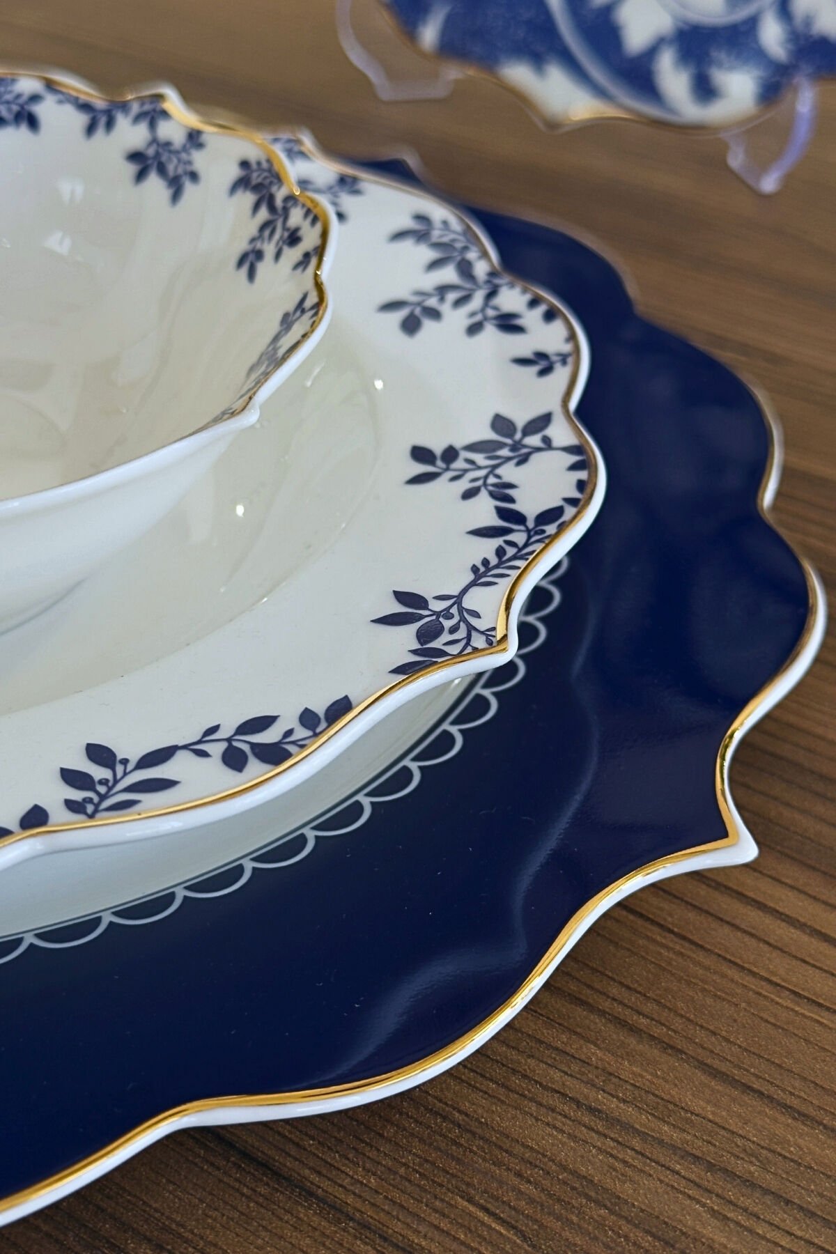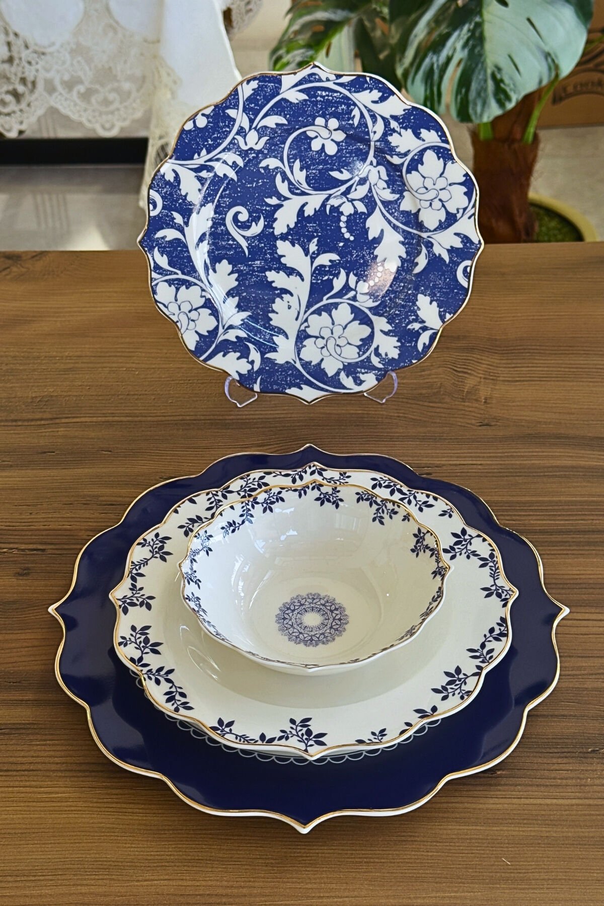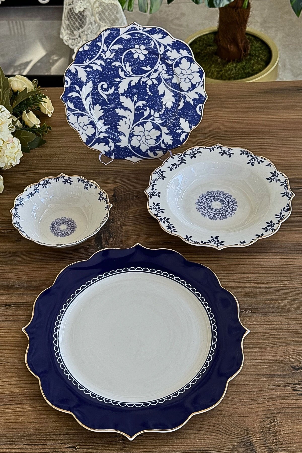 Modern lacivert tonları ve zarif floral desenlerin birleştiği Royal Blue Flora Yemek Takımı, sofralarınıza şıklık ve uyum kazandırmak için tasarlanmıştır. Gold detaylarla tamamlanan şık hatları sayesinde hem günlük kullanımda hem de özel davetlerde estetik bir sunum sağlar.