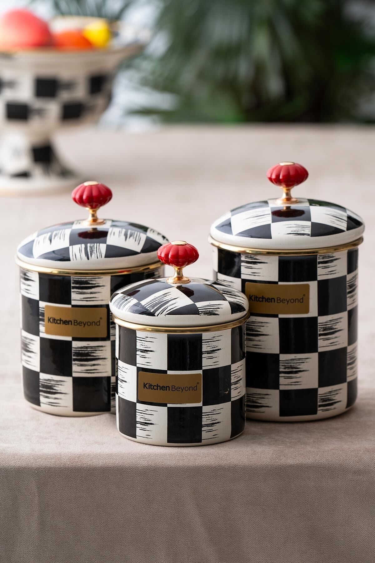 The Qualita King Enamel 3-Piece Jar Set offers both organization and aesthetics in the kitchen. Its durable enamel construction ensures long-lasting use, and its stylish design creates a decorative look on countertops.