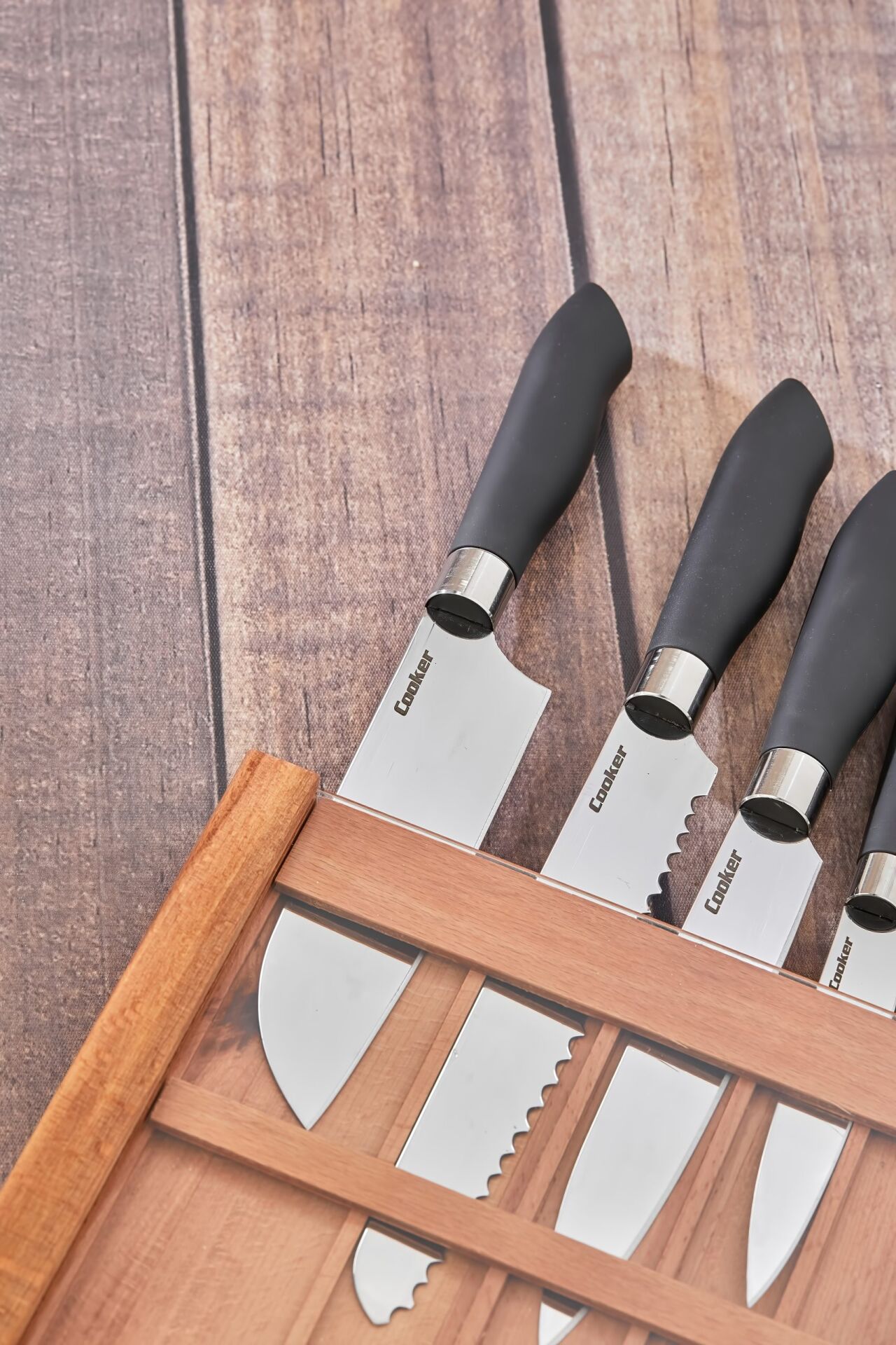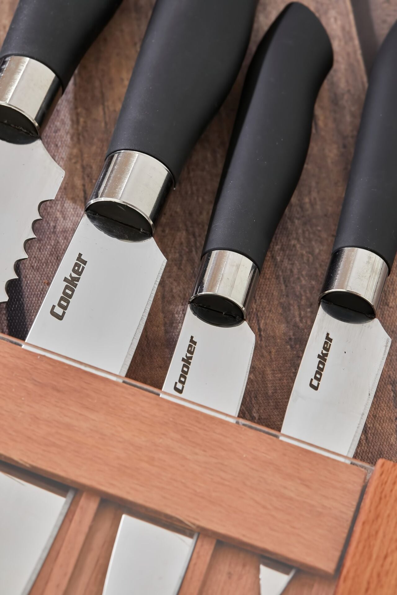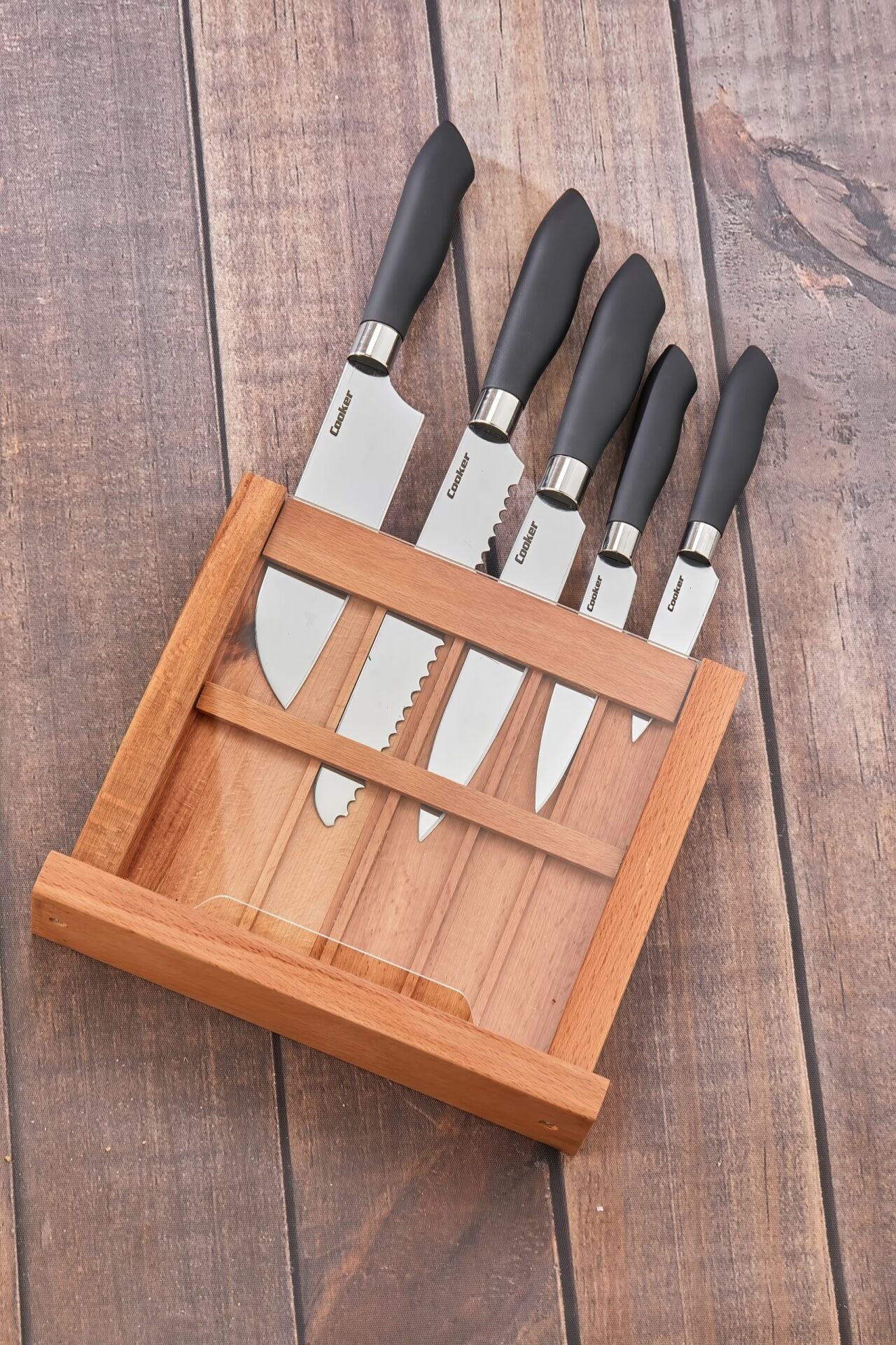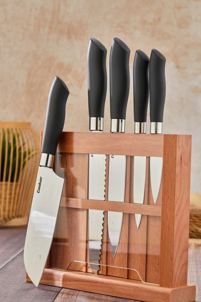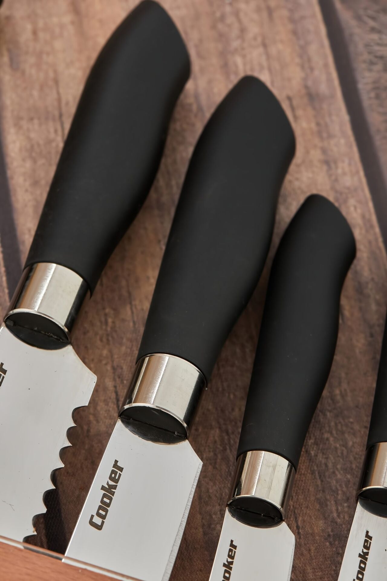 The Skycut 6-Piece Lux Knife Set is an elegant and functional set designed for a professional cutting experience. The high-quality steel blades maintain their sharpness for a long time, while the ergonomic handle ensures safe and comfortable use. Ideal for those seeking both elegance and performance in the kitchen.