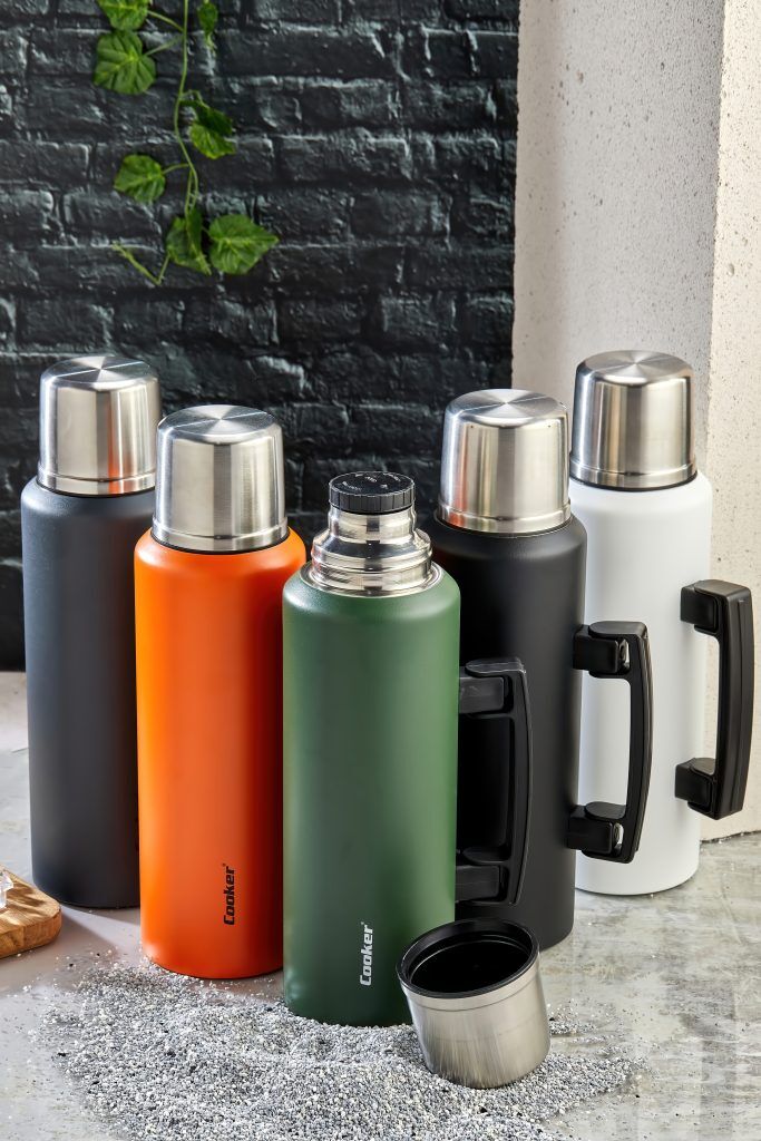 The Cooker Stainless Steel Thermos - 24 Hour Hot, 48 Hour Cold Keeper uses high-performance vacuum insulation technology to keep your beverages at the ideal temperature for extended periods. It's an excellent choice for everyday use, as well as camping, travel, and office environments. Its modern design and durable steel body ensure long-lasting use.
