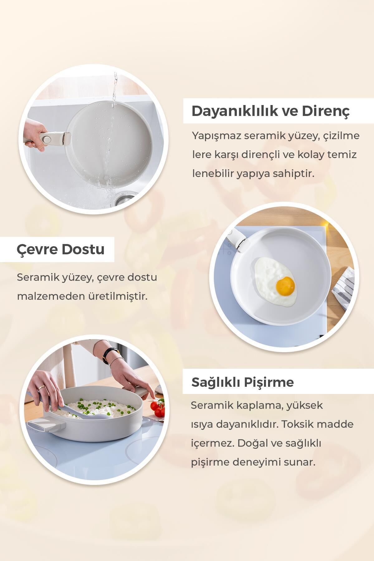 The Ultimate Pro Pan provides both aesthetic and healthy cooking comfort with its elegant cream color and natural structure.