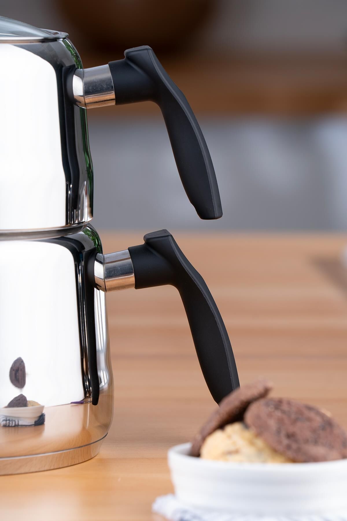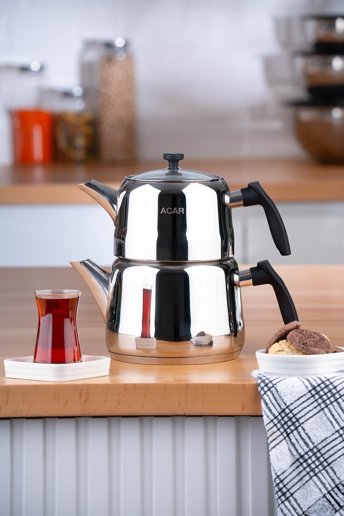 Alegra Aile Boy Çaydanlık Takımı, geniş hacmi ve yüksek kaliteli paslanmaz çelik yapısıyla kalabalık aile sofraları için mükemmel bir tercihtir. Şık tasarımıyla mutfağınıza zarafet katarken, ısıyı eşit dağıtan yapısı sayesinde her zaman ideal demleme performansı sunar.