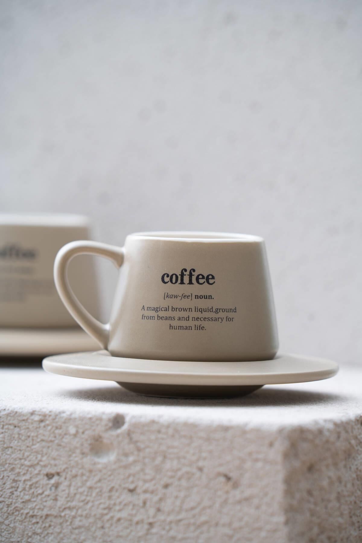 Blush Kahve Fincan Takımı, minimalist tasarımı ve soğuk Gri tonuyla kahve keyfinize zarif bir dokunuş katar. Mat yüzeyi ve sade tipografik detayıyla modern tarzı yansıtan bu set, kahve molalarınıza doğal bir şıklık kazandırır. 90 ml hacmindeki fincanlar, cappuccino, latte veya filtre kahve sunumları için ideal boyuttadır.