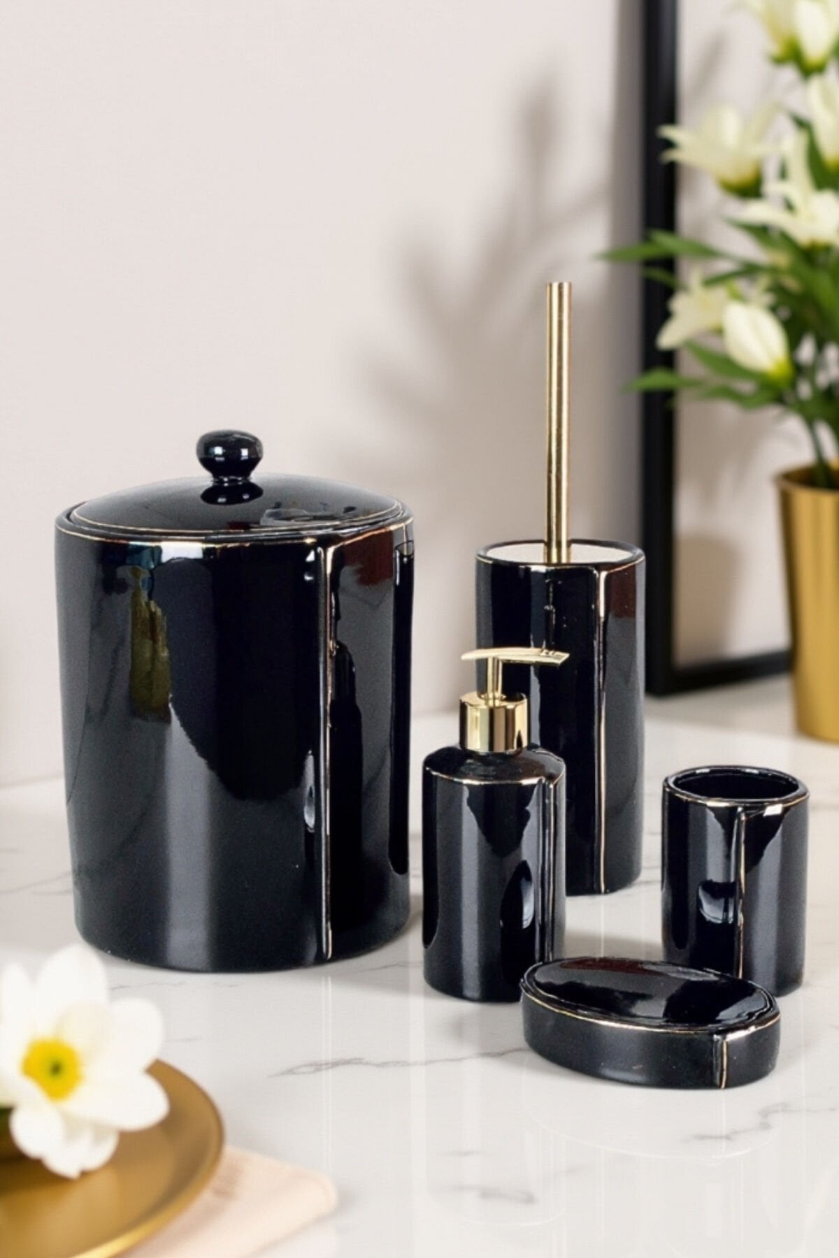 Cordoba Banyo Seti, minimalist formu ve gold vurgularıyla banyolara sofistike bir görünüm kazandırır. Parlak siyah porselen yüzeyi, altın tonundaki detaylarla birleşerek sade ama etkileyici bir zarafet sunar. Set; sıvı sabunluk, sabunluk, diş fırçalık, tuvalet fırçası ve çöp kovasından oluşur. Yüksek kaliteli porselen yapısı sayesinde uzun ömürlü kullanım sağlarken, pürüzsüz yüzeyi kolay temizlenir. Zamansız tasarımıyla modern banyolara lüks bir dokunuş katan Cordoba serisi, estetiği ve işlevi bir arada sunar.