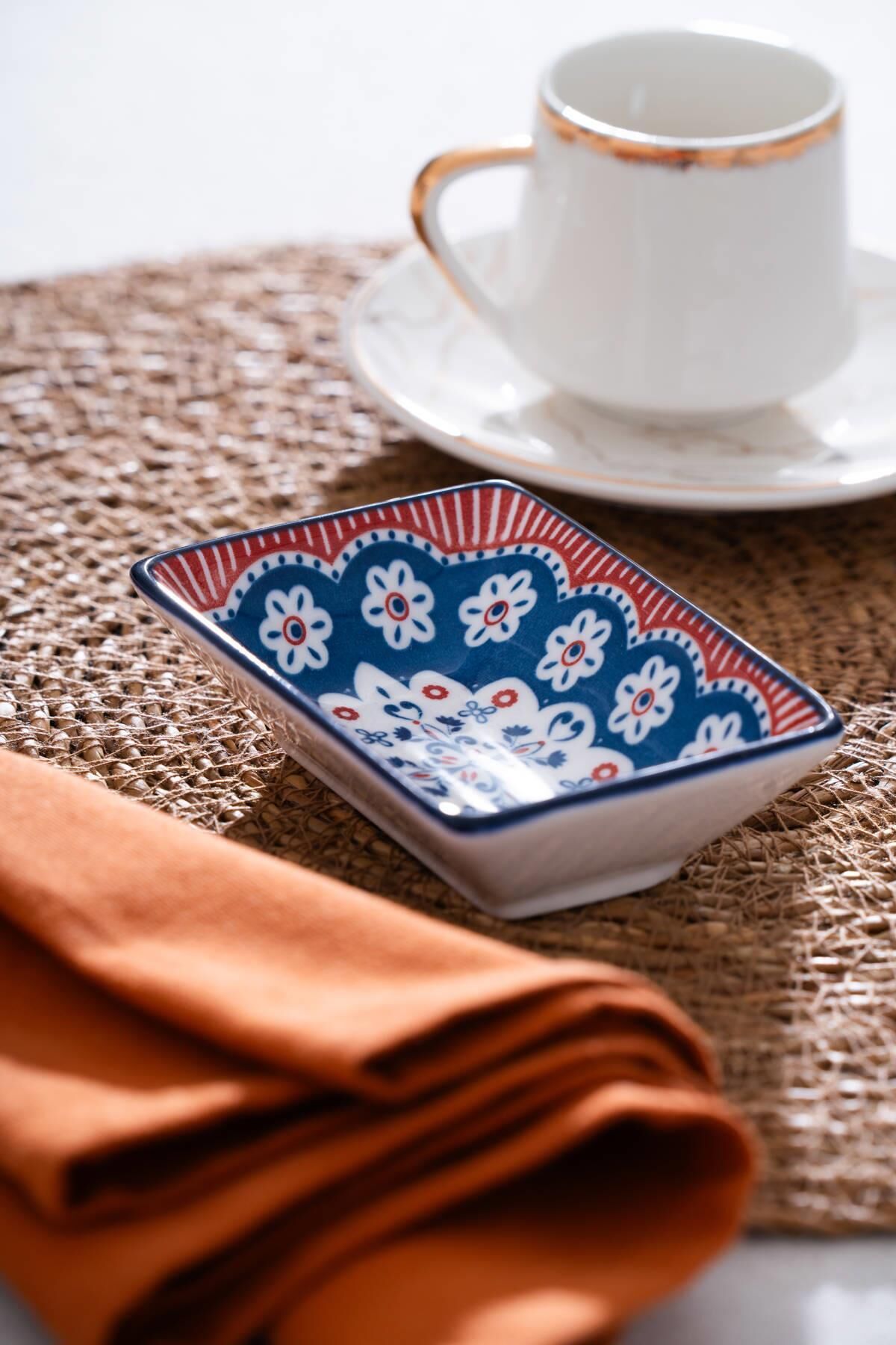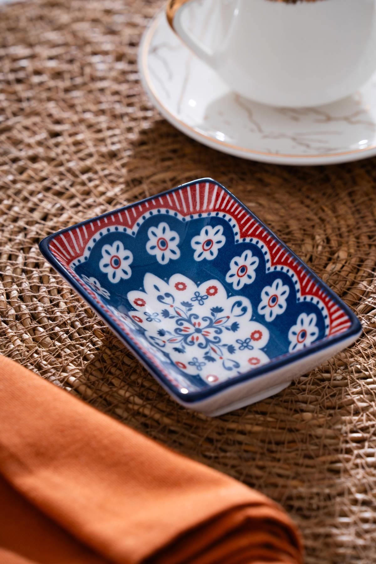 Elsie Dikdörtgen Sunum Kase, sofralarınıza renkli bir enerji ve geleneksel dokunuş katmak için tasarlandı. Kırmızı ve lacivert tonlardaki etnik desenleriyle dikkat çeken bu zarif kase, 10 cm’lik kompakt boyutuyla kahvaltı, meze veya sos sunumlarınızda şık bir tamamlayıcı olur. El işçiliği hissi veren detaylarıyla hem modern hem nostaljik bir estetik taşır.