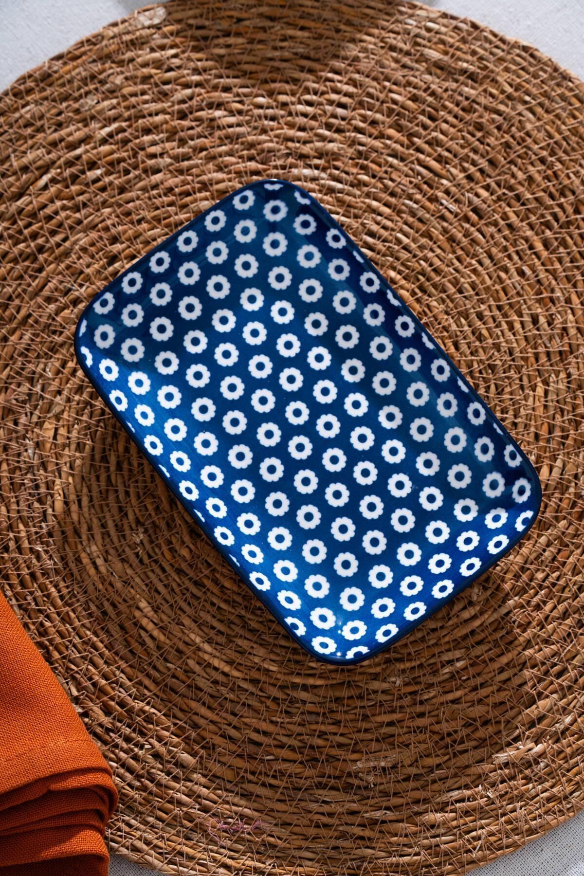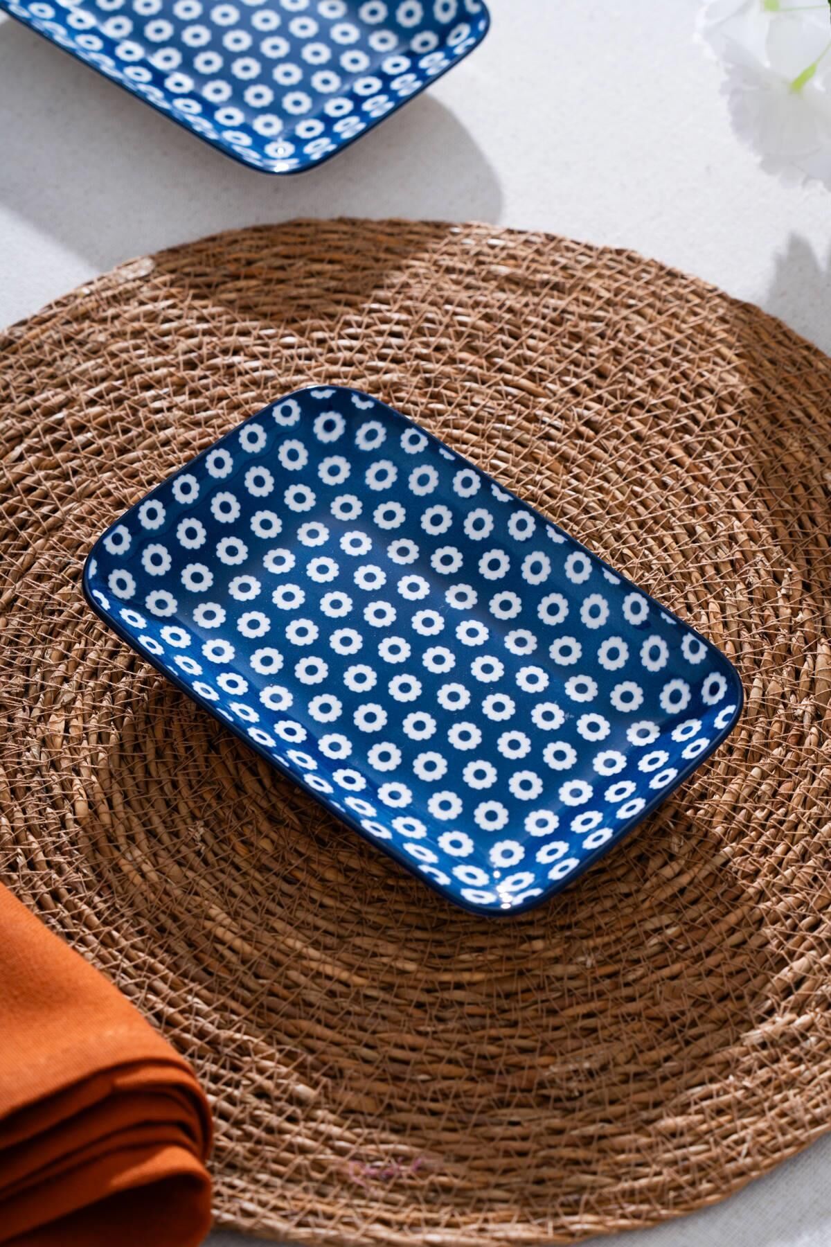Elsie Dikdörtgen Sunum Tabak, lacivert tonlarındaki zarif çiçek motifleriyle sofralarınıza sıcak bir Akdeniz dokunuşu kazandırır. Renklerin enerjisini geleneksel desenlerle buluşturan bu özel parça, hem günlük kahvaltılarda hem de özel davetlerde şık sunumlar yapmanızı sağlar. Porselenin parlak yüzeyiyle birleşen el işi hissi veren detaylar, sofranıza estetik bir canlılık katar.