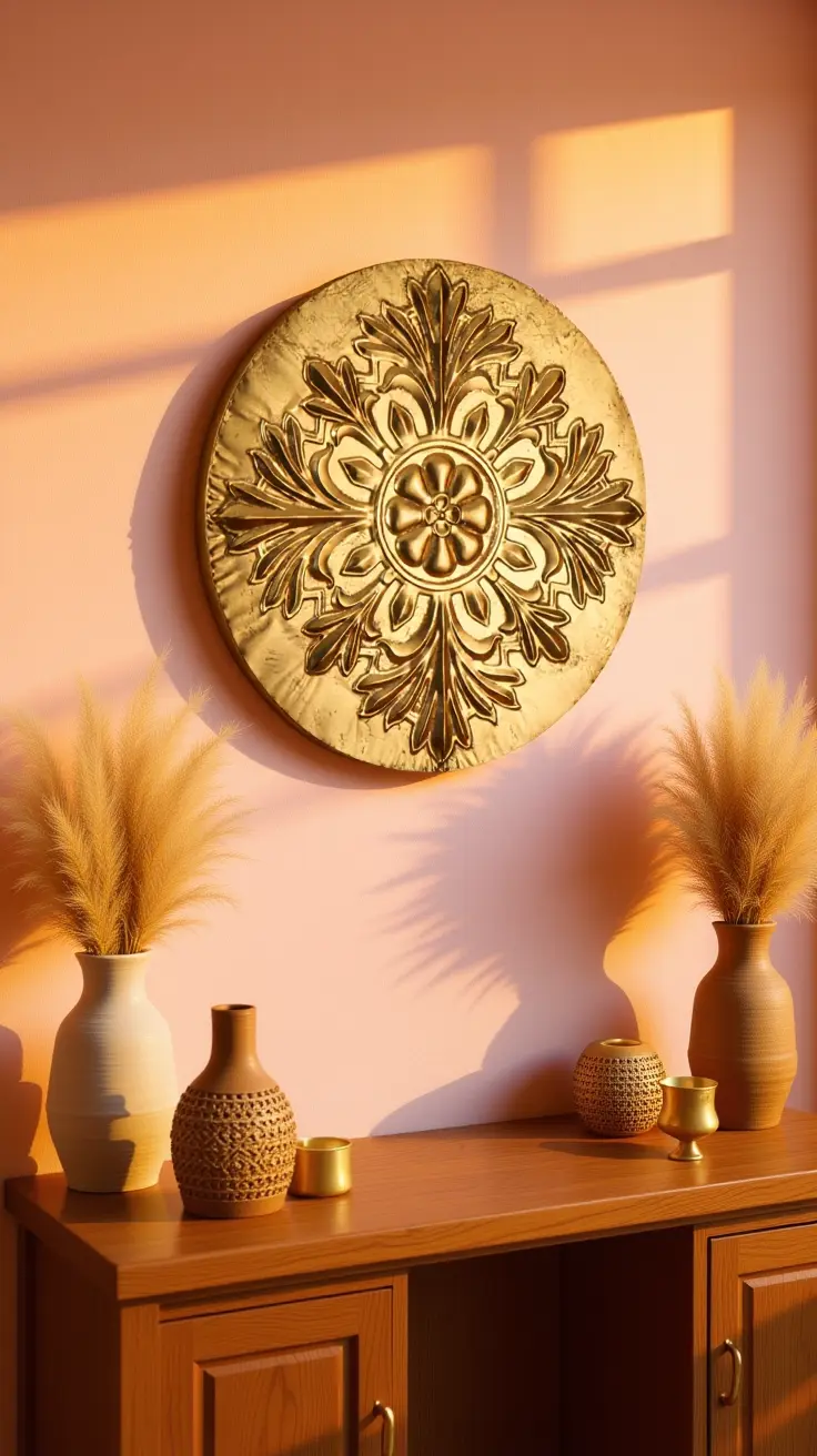 Vintage Metal Duvar Pano - 70 cm, klasik estetiği modern bir yorumla duvarlarınıza taşır. Gold tonlarındaki zarif detaylar, ışığı yansıtarak mekâna sıcak ve sofistike bir atmosfer kazandırır. Her çizgisi, geçmişin zarafetini bugünün tasarım anlayışıyla buluşturur.