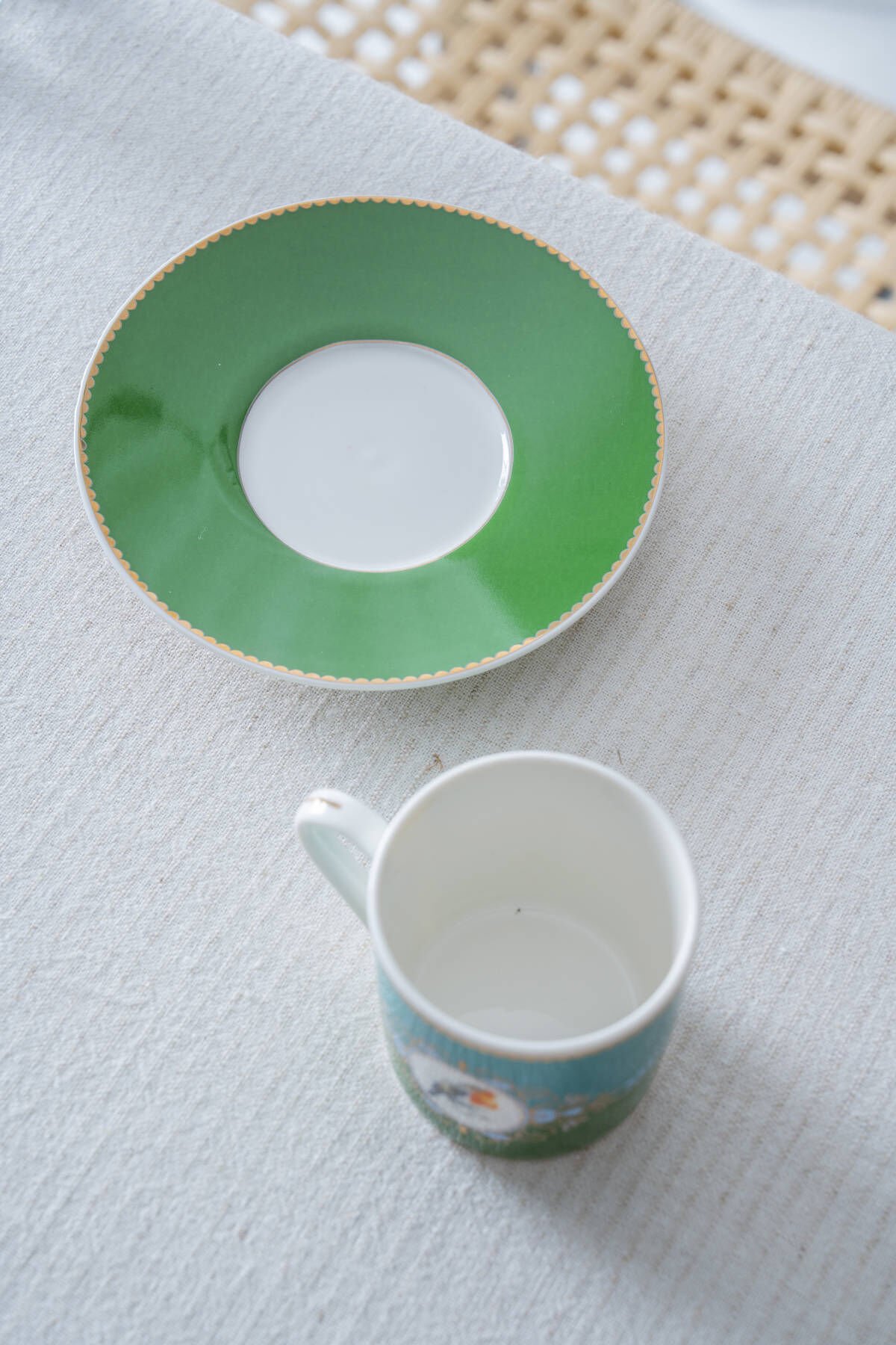 Yeşil-Mavi Kahve Fincan Takımı, hem günlük kahve keyfinize renk katar hem de misafir sunumlarında dikkat çekici bir parça olarak öne çıkar.