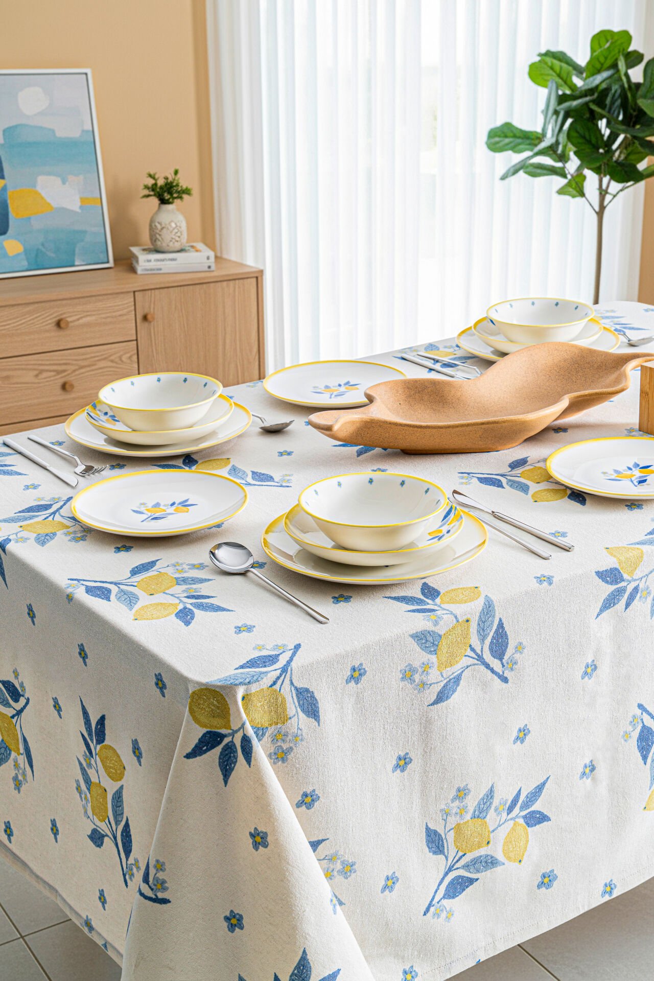 Doğanın enerjisini ve yazın ışıltısını sofralarınıza taşıyan bu masa örtüsü, sade şıklığı ve ferah dokusuyla zamansız bir Akdeniz klasiğidir.