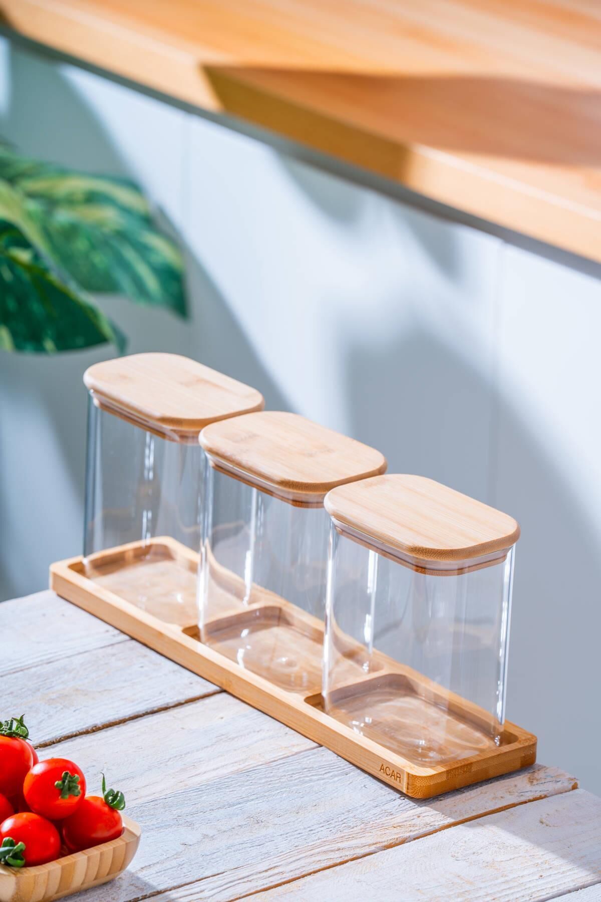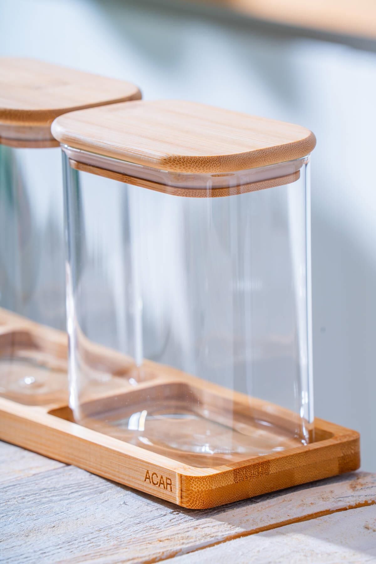 - Ürün İçeriği: 3 adet kavanoz (15 x 12.3 x 8.3 cm - 1000 ml), 1 adet bambu stand
