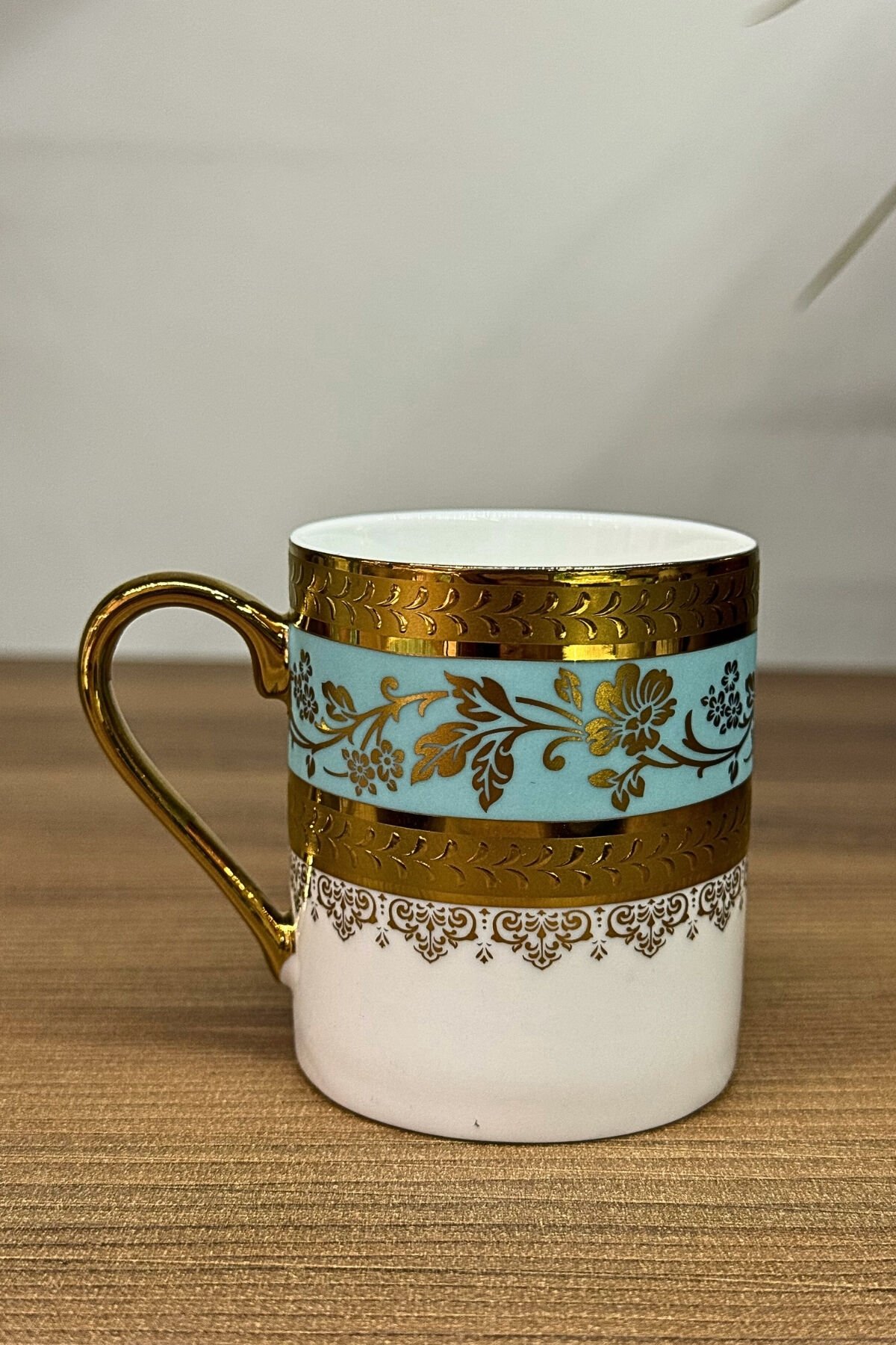 - Gold İşlemeli Tasarım: Fincan kenarları ve kulp bölümlerinde yer alan altın detaylar, klasik şıklığı modern çizgilerle buluşturur.