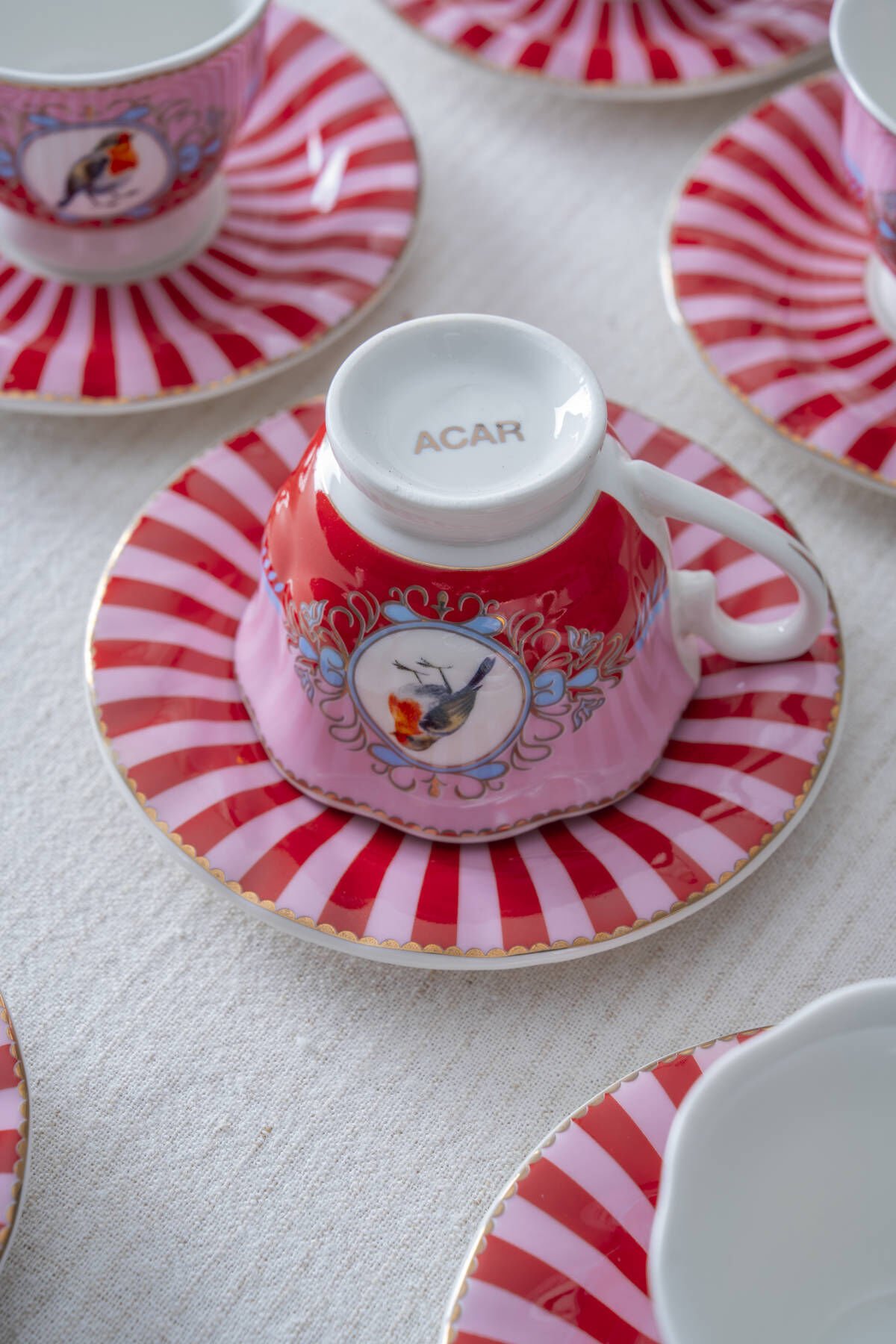Kuş Figürlü Kırmızı Çizgili 6’lı Kahve Fincan Takımı, günün her anındaki kahve molalarınızı küçük mutluluk ritüellerine dönüştürmek için tasarlandı. Kendiniz için alabileceğiniz gibi, sevdikleriniz için de şık ve anlamlı bir hediye alternatifi sunar.