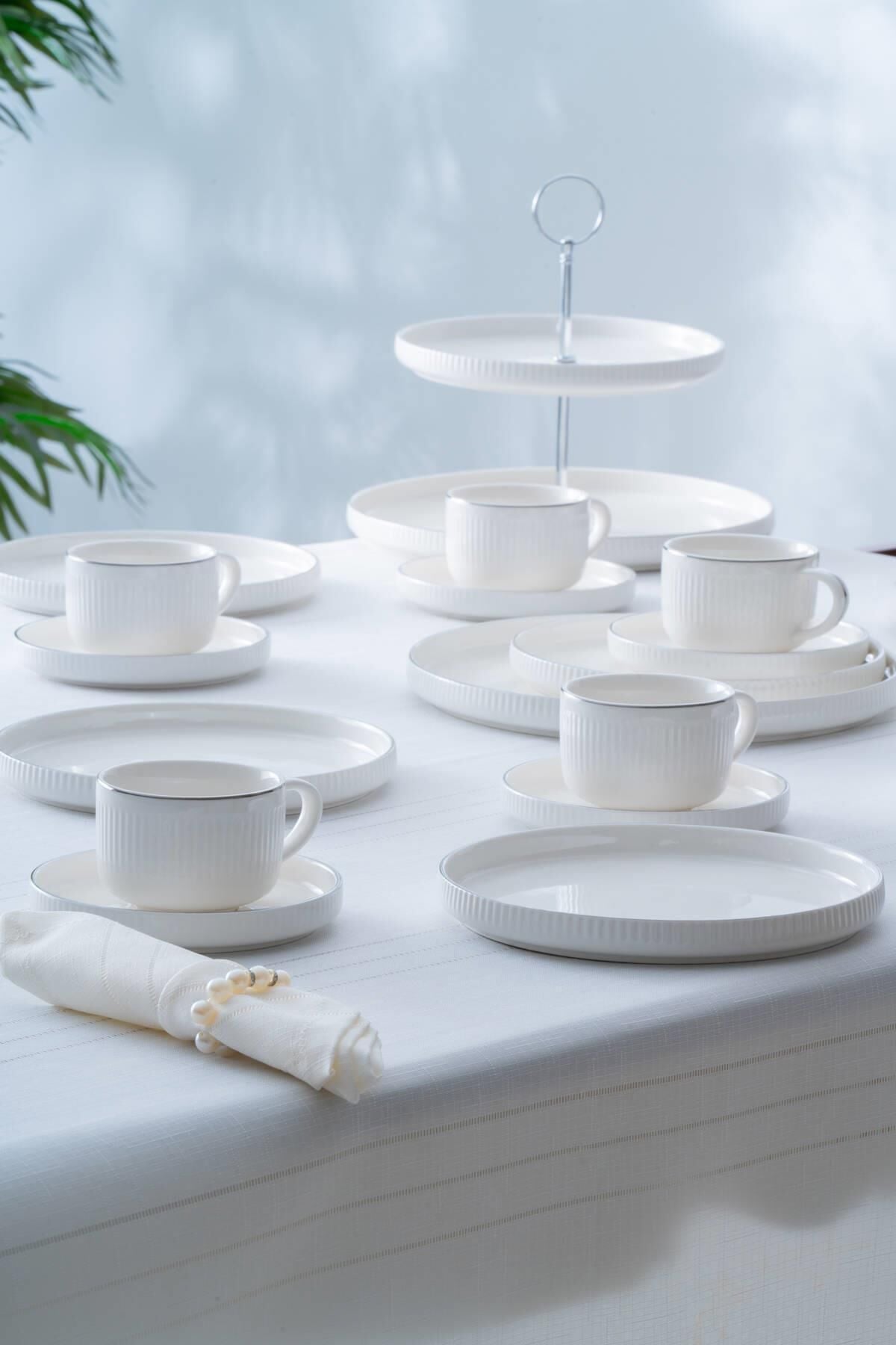 Modern çizgisi ve zarif gri tonuyla öne çıkan Sierra Brunch Seti, 6 kişilik şık sofralar için tasarlandı. Porselenin doğal parlaklığıyla birleşen soft gümüş detaylar, brunch sunumlarınıza minimal bir zarafet kazandırır.