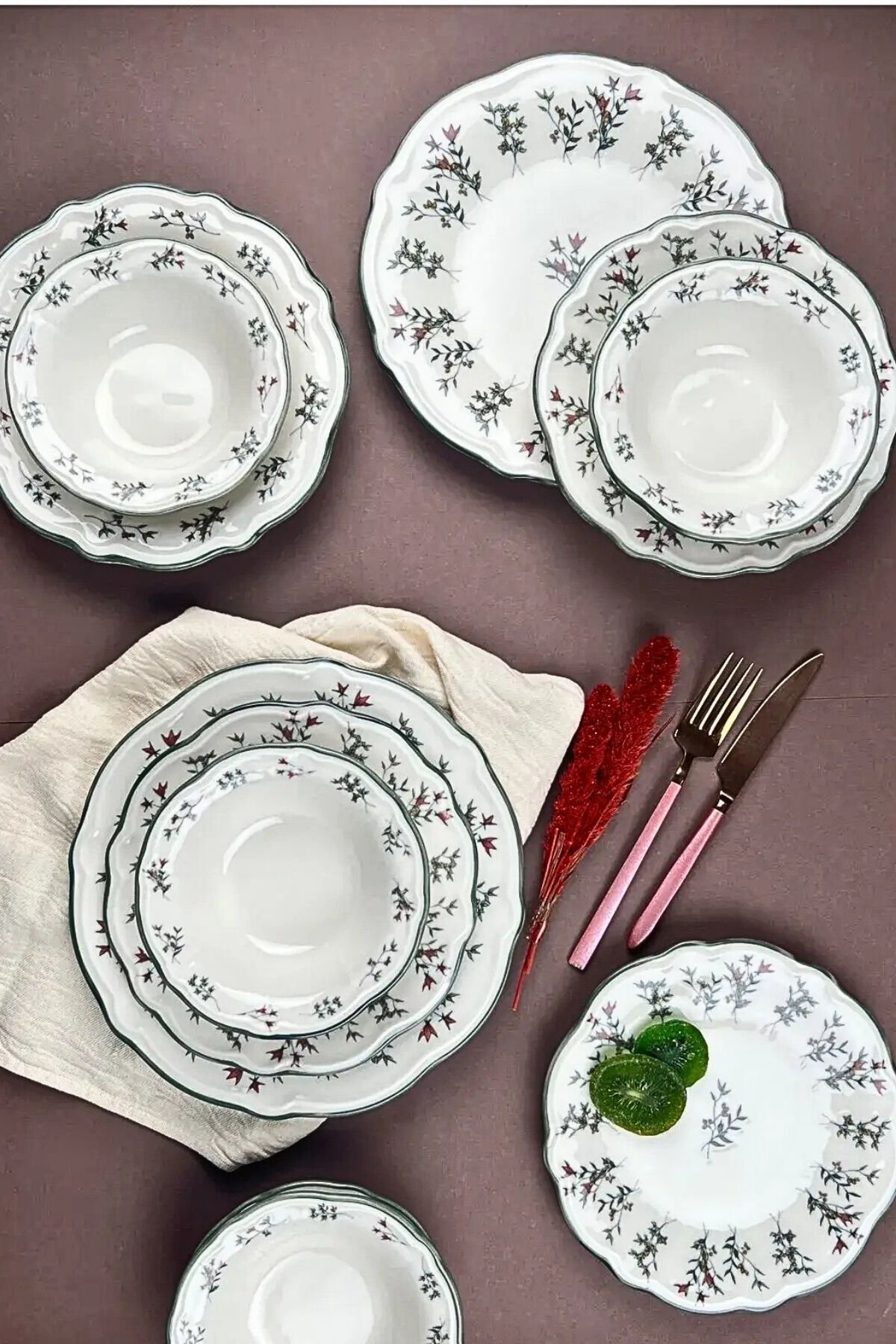Terra Yemek Takımı, doğal çiçek desenleri ve yumuşak tonlarıyla sofralarınıza zarif ve sıcak bir hava katar. Yuvarlak formu ve modern çizgileriyle günlük kullanıma uygun olduğu gibi misafir sofralarında da şık bir sunum sağlar.