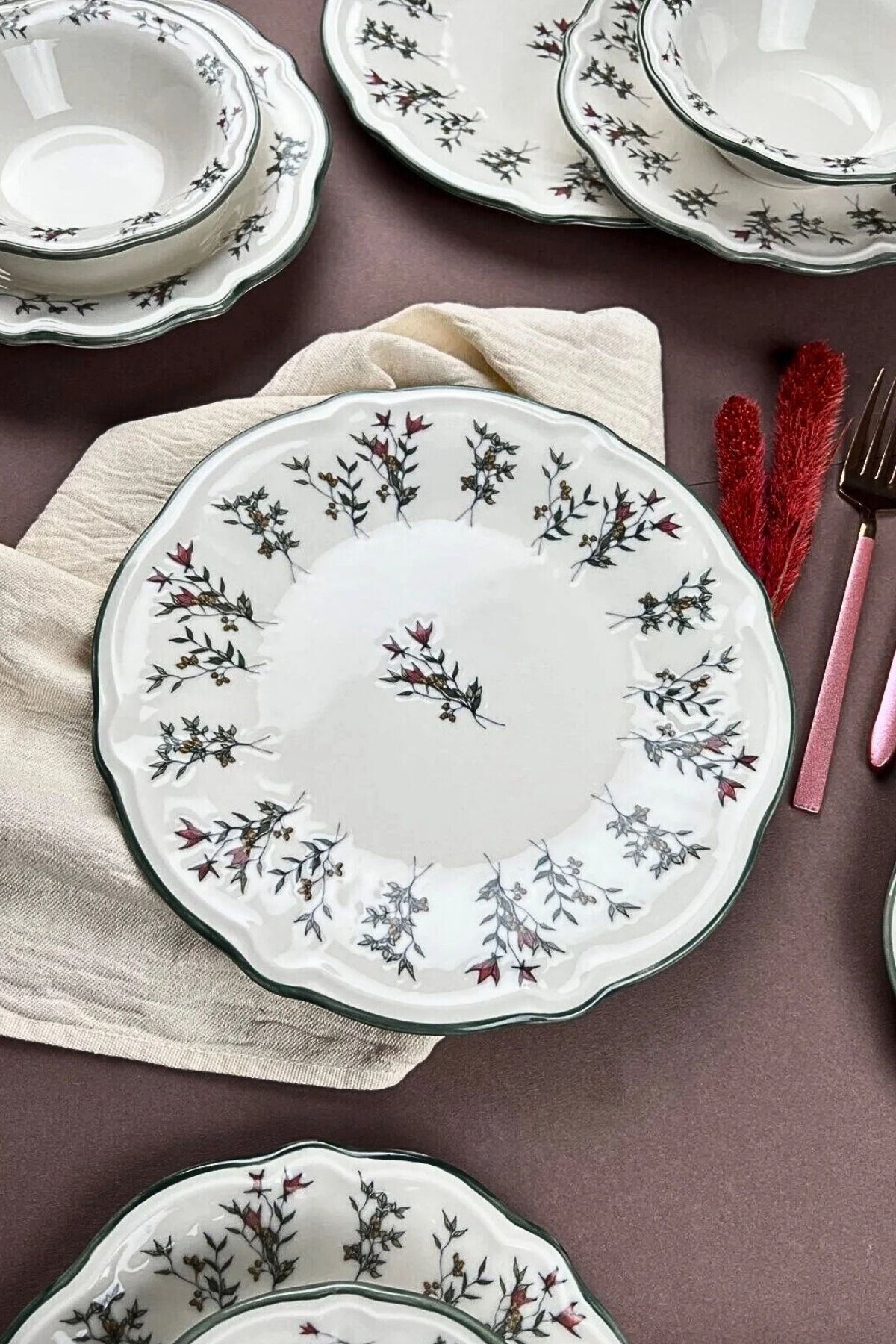 Terra serisi, doğadan ilham alan zarif desenleri ve kaliteli porselen yapısıyla sofralarınızda hoş bir bütünlük sağlar. Hem günlük hem de misafir kullanımına uygun, dayanıklı ve uzun ömürlü bir takımdır.