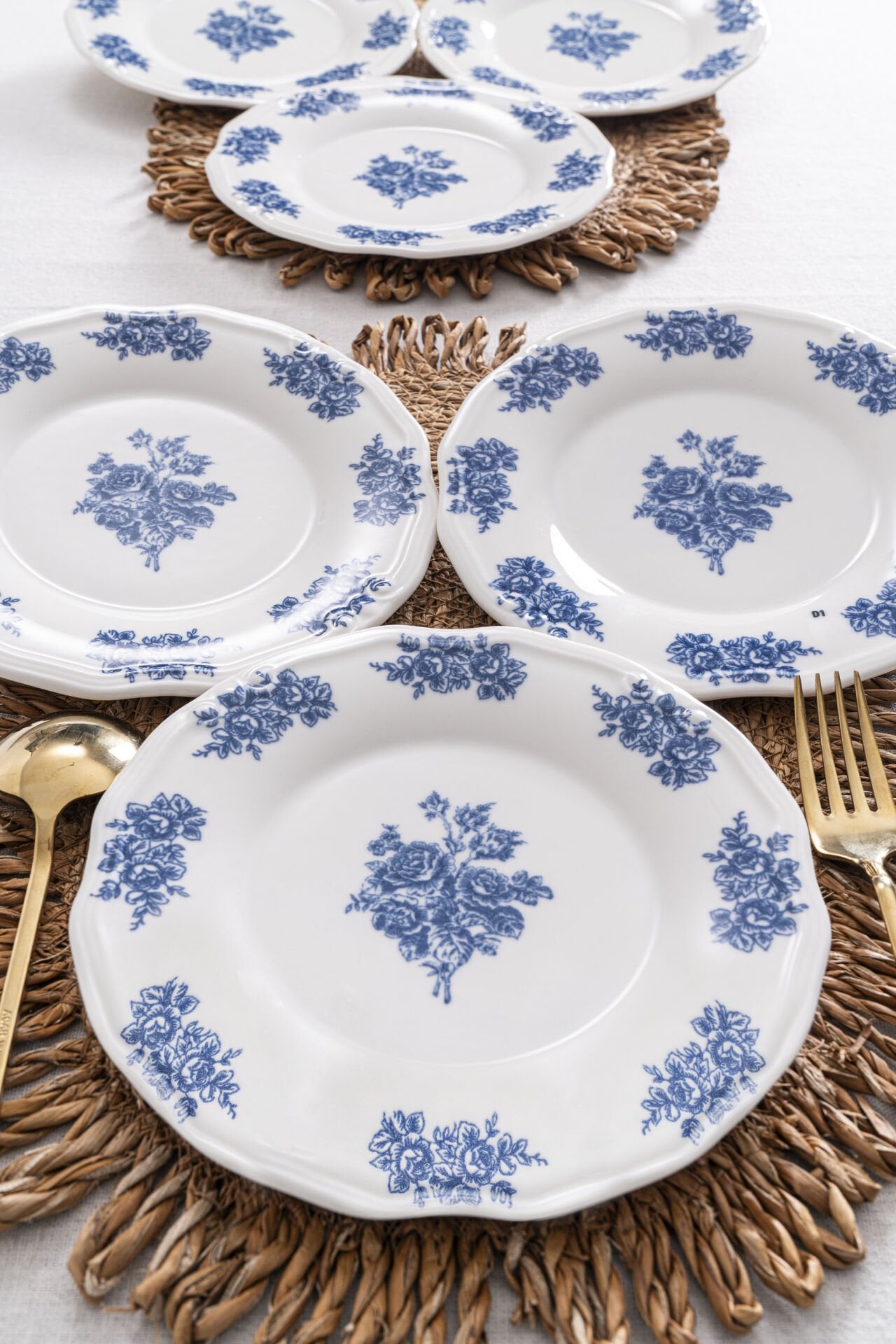 Lacivertin zarif tonlarıyla süslenmiş Vintage Flowers Blue koleksiyonu, sofralarınıza nostaljik bir dokunuş kazandırır. Aynı desene sahip servis tabağı, yemek tabağı ve çorba kasesi ile birlikte masa örtüsü ve runner gibi tekstil ürünleriyle kombinleyerek bütün bir masa konsepti oluşturabilirsiniz.